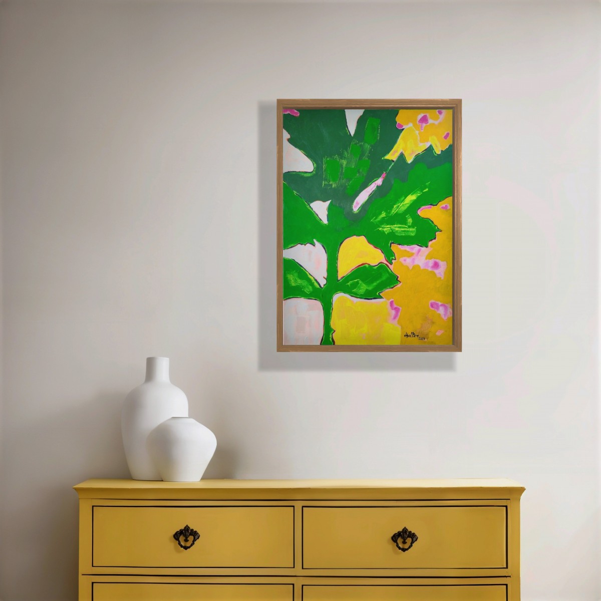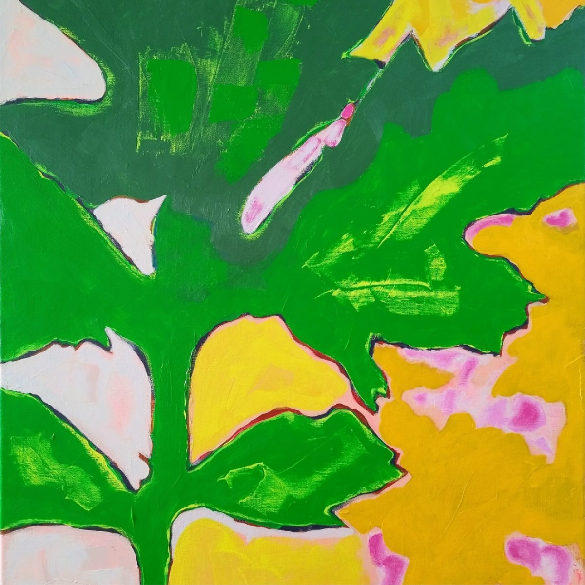 “Jeune pousse" (d’après diapographique #55) ©alainhalter 2023. Châssis entoilé en lin, Acryliques extra fines Rembrandt et Amsterdam Talens, emploi de couleurs fluorescentes. Année : juillet 2023. Format 25P : 60 (largeur) x 81 (hauteur) cm. Hors encadrement. Pièce unique.
