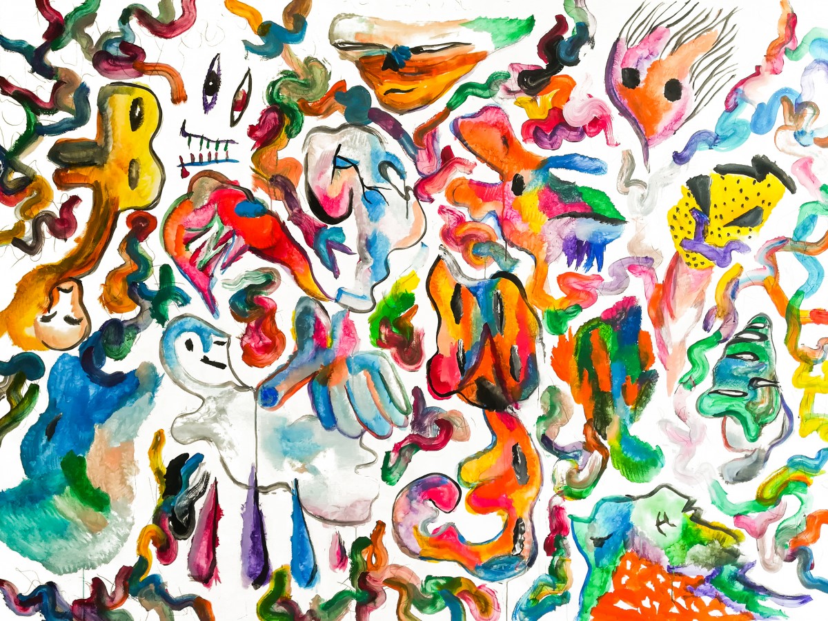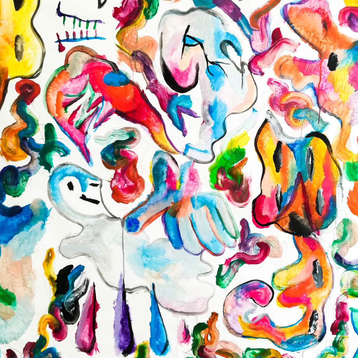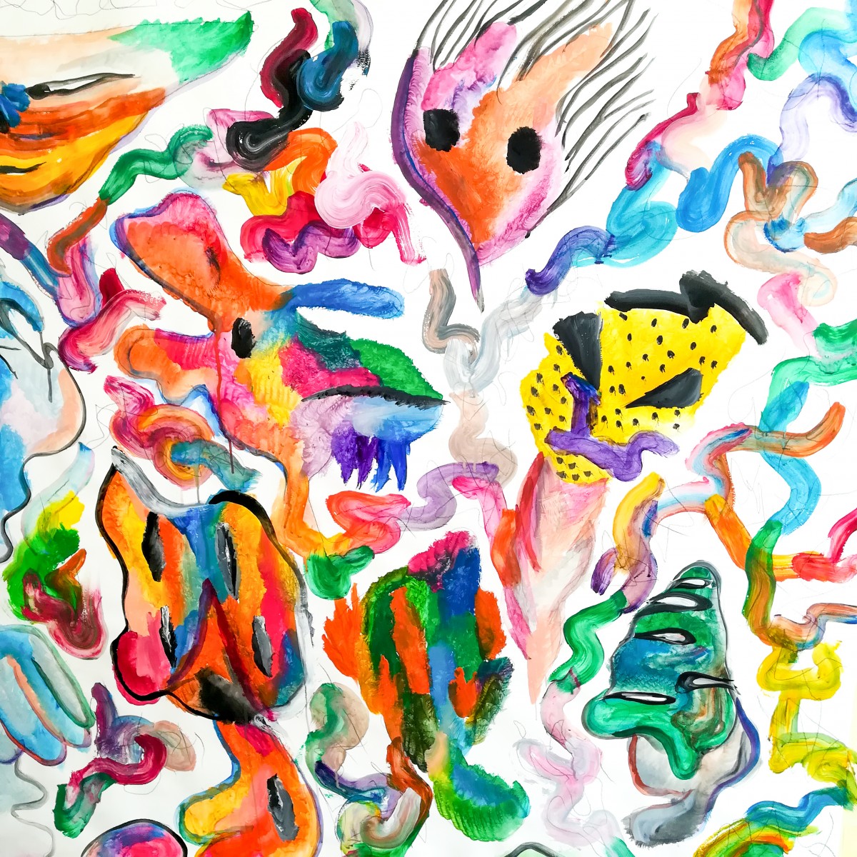 Surrealist concept of interconnected psyches as a big family, manifested in different characteristic archetypes in a playful conversation by exchanging different qualities of energy.