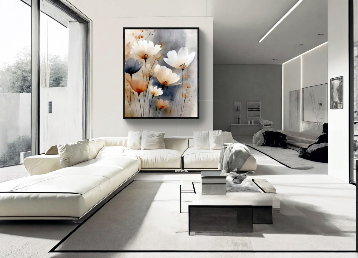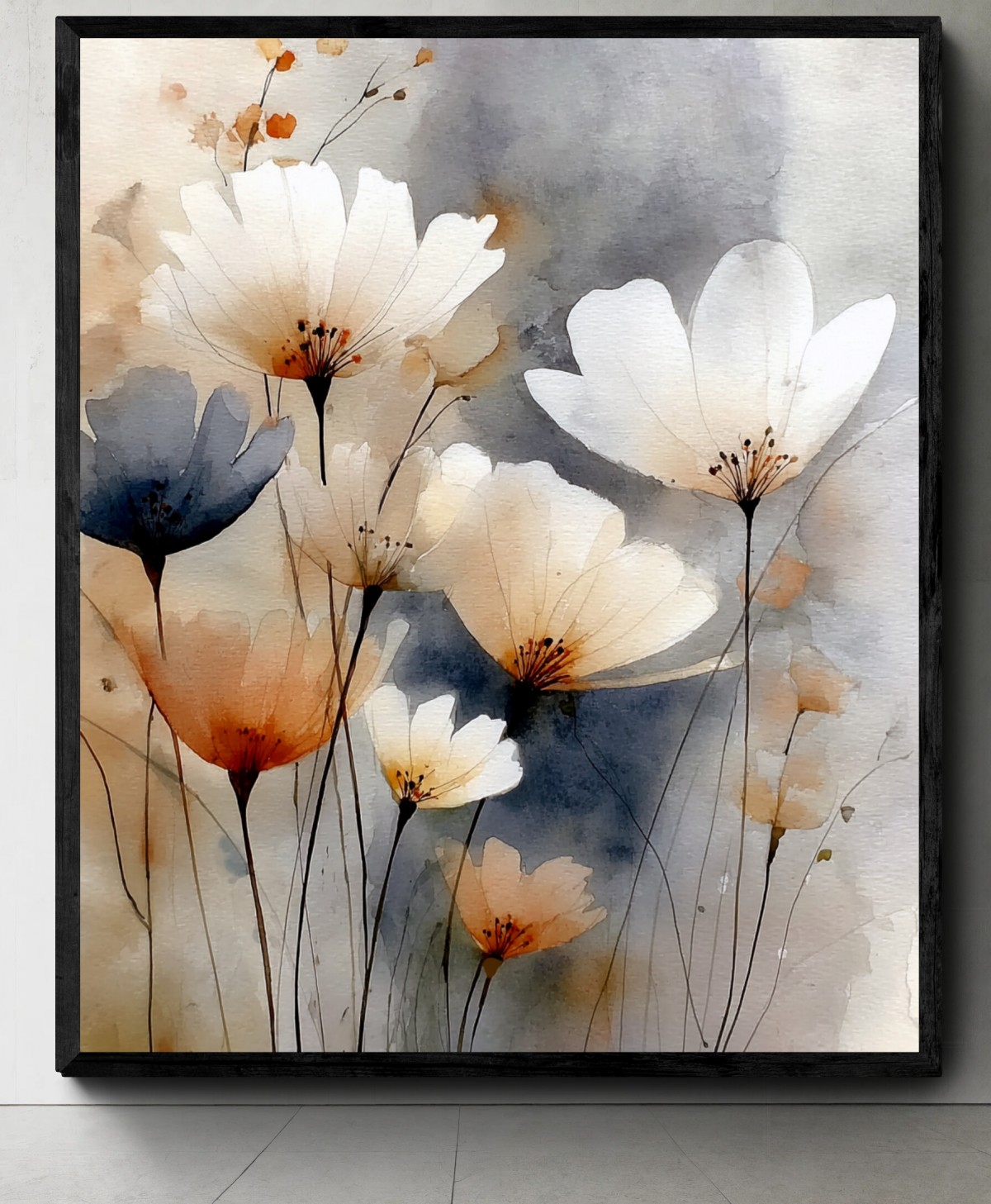Creation digitale, peinture, aquarelle, encre, feutres ...sur toile de format 100/80 cm, dans des teintes de terre avec une texture aquarelle, pour un résultat doux et chaleureux dans des couleurs naturelles très a la mode de nos jours .