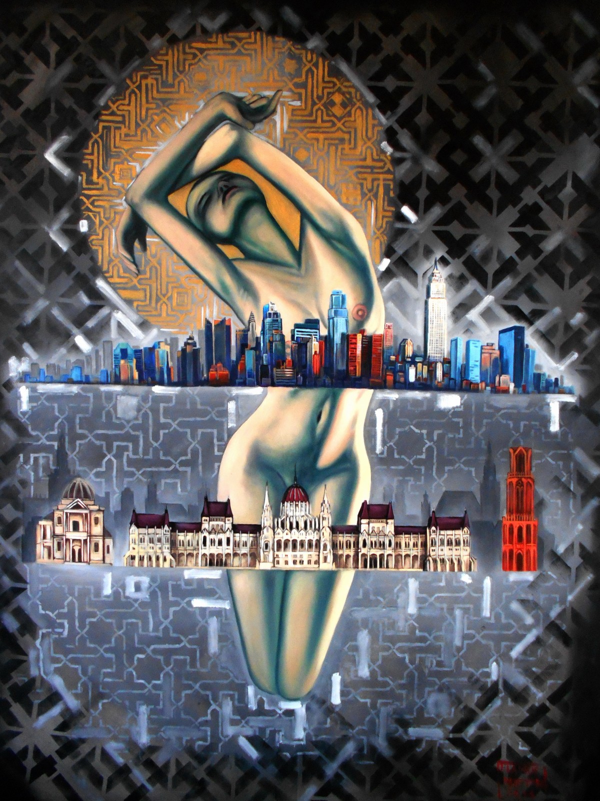 Climax, a painting that depicts the pinnacle adornment of ones ego, self absorption and in a way a sunbathing on worlds attention through sexual objectification.