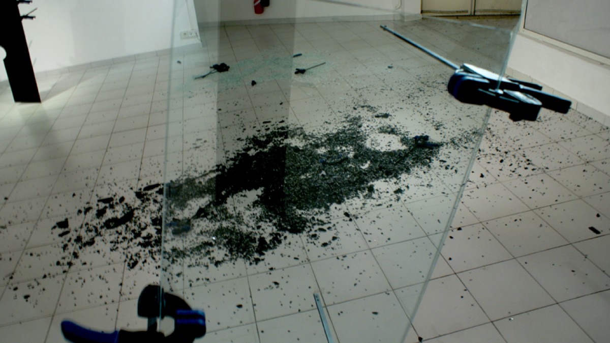 On comprend que pour tenir ensemble ces plaques doivent être arrimées l’une à l’autre. Les serre-joints qui les relient et les compressent exercent une pression telle que les plaques se courbent jusqu’au point où il est possible qu’elles se brisent.