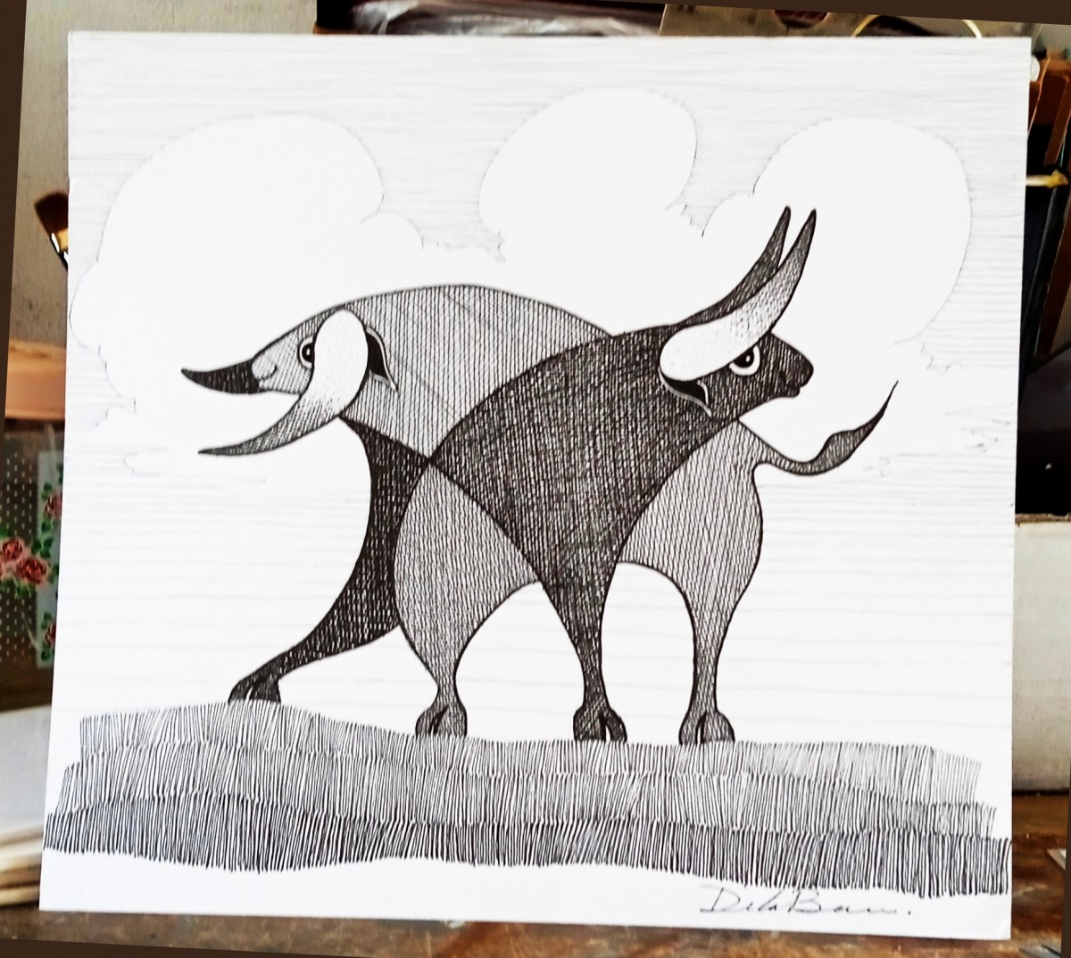 Original drawing on paper 300 gr., ink chine black, available with certificate and free shipping