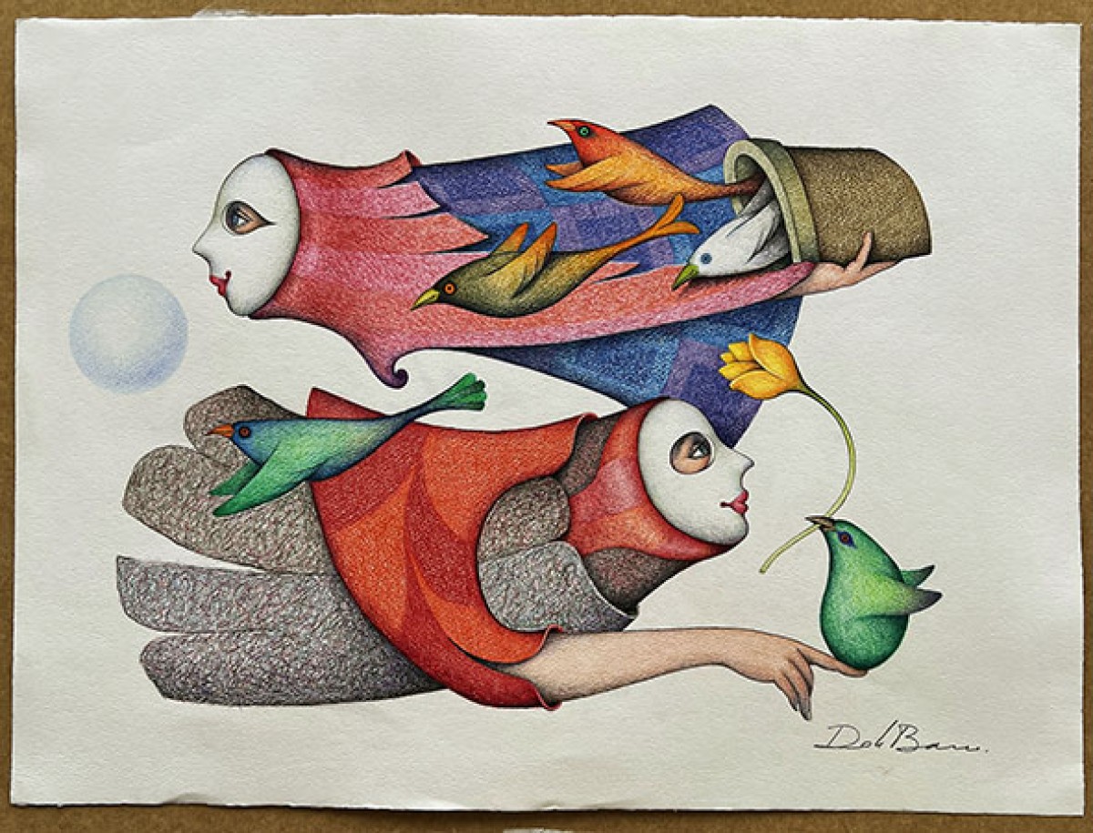 Original drawing made with Polychromos colored pencil on 300 g cotton paper, includes certificate and free shipping.