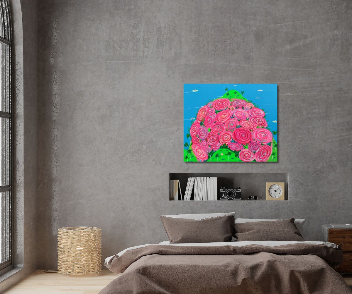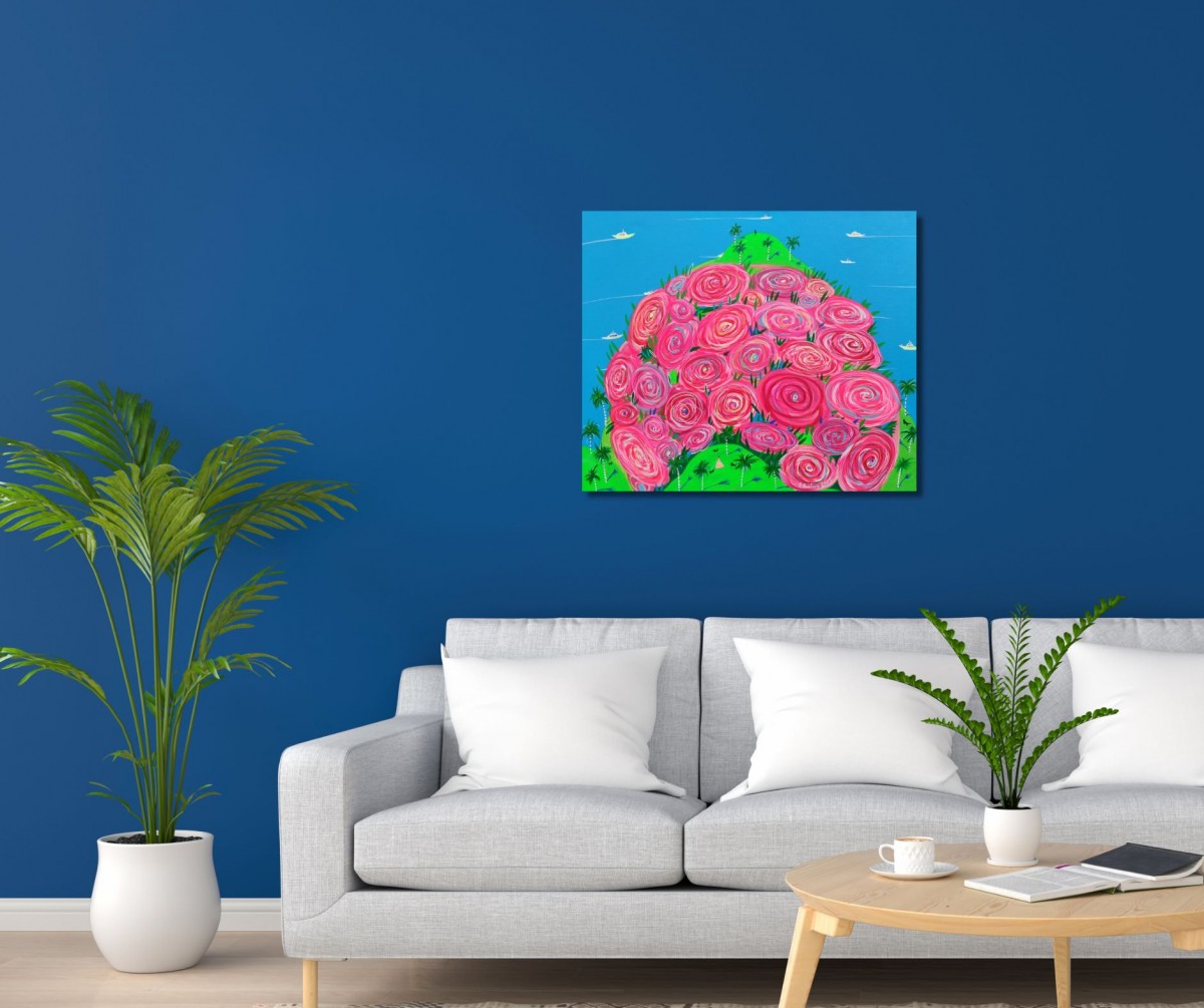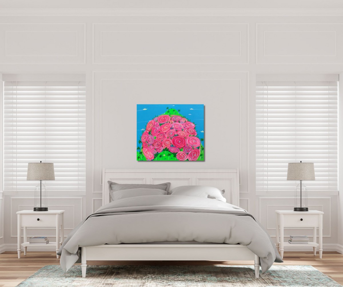 The painting is 2 cm deep and can be hung without an additional frame, also all picture sides are painted.