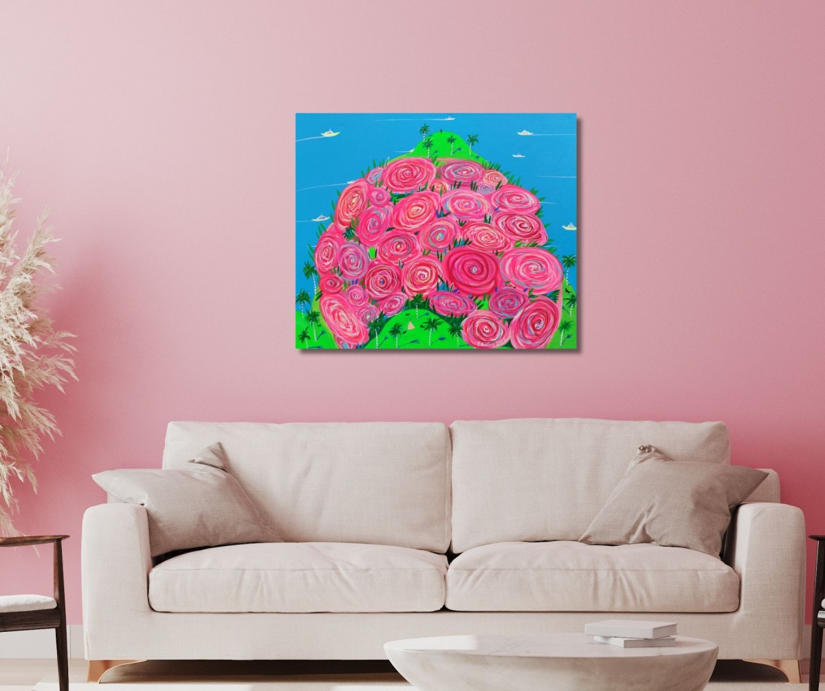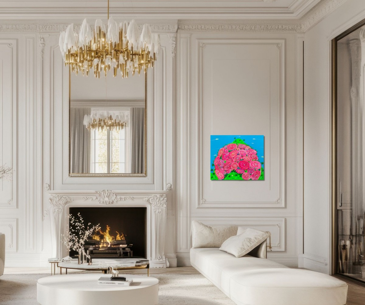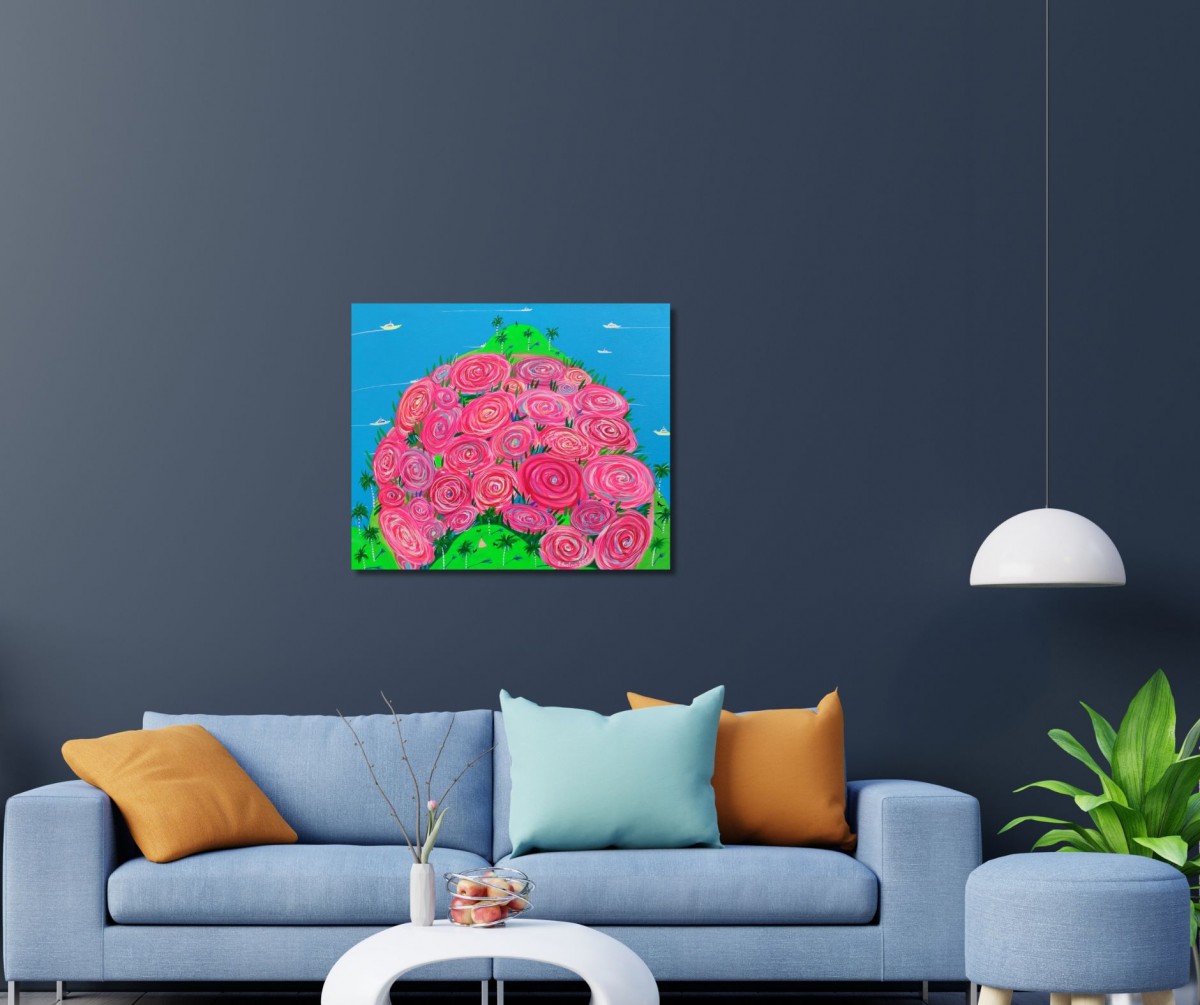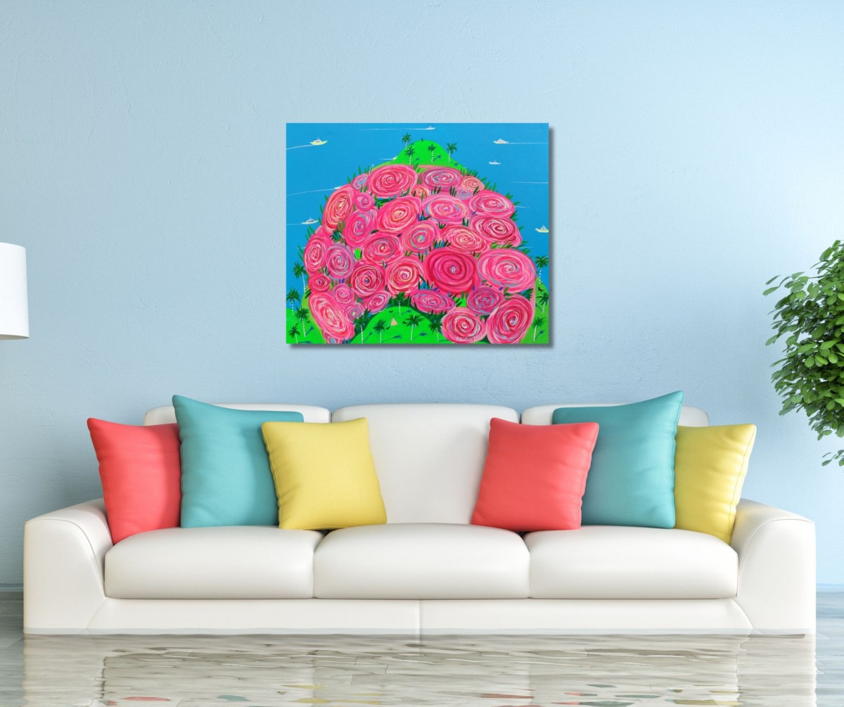 The painting is 2 cm deep and can be hung without an additional frame, also all picture sides are painted.
