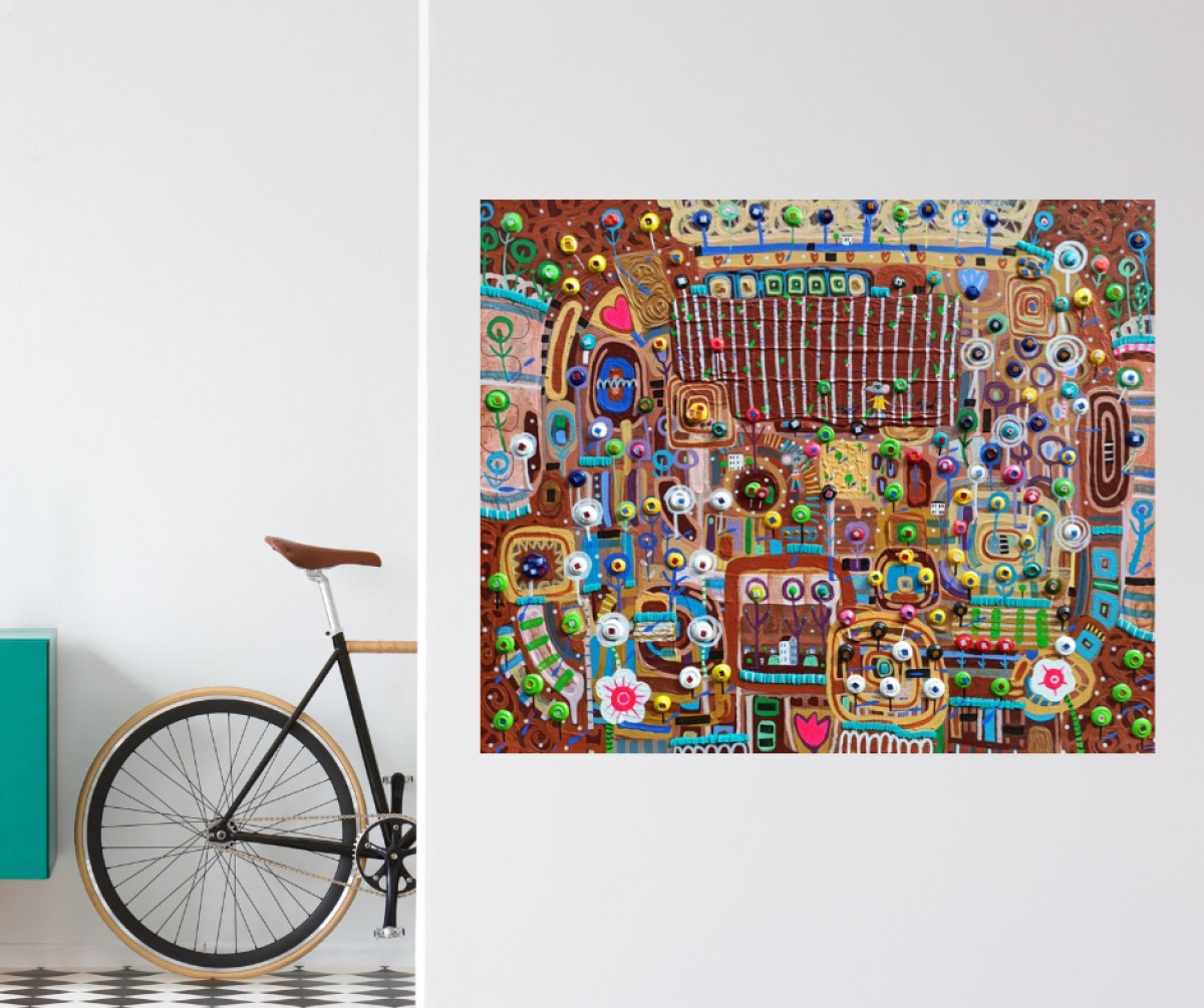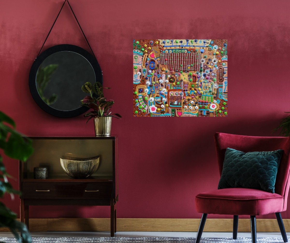 The painting is 4 cm deep and can be hung without an additional frame, also all picture sides are painted.