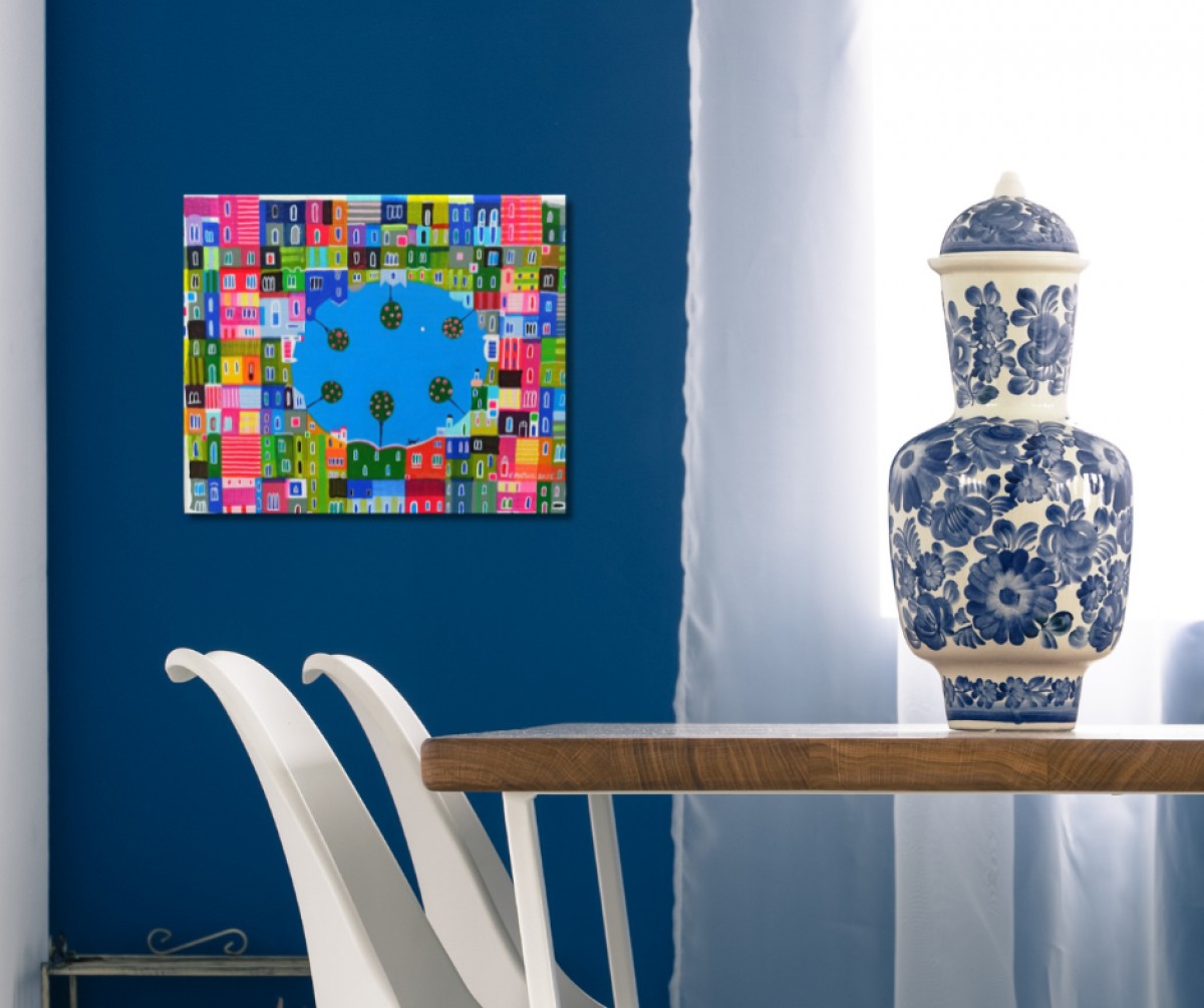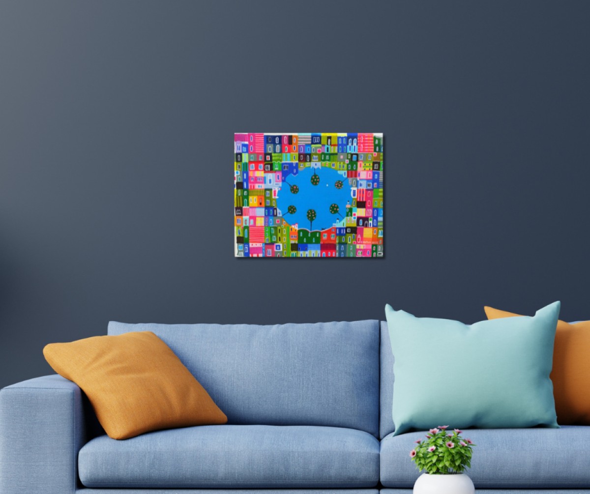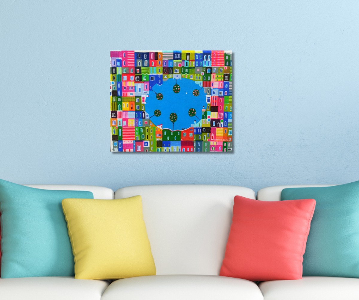 The painting is 2 cm deep and can be hung without an additional frame, also all picture sides are painted.
