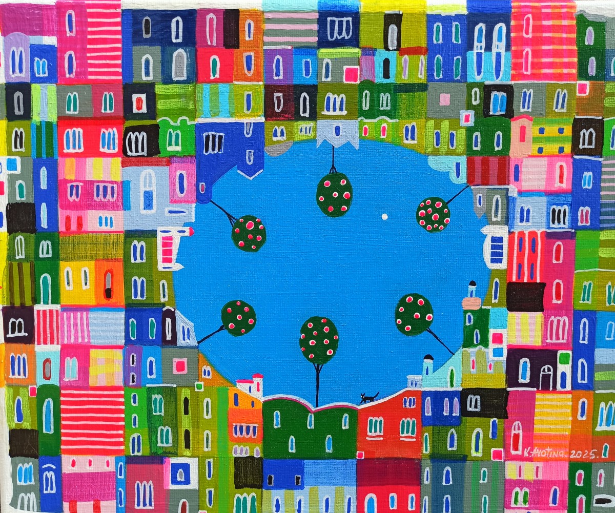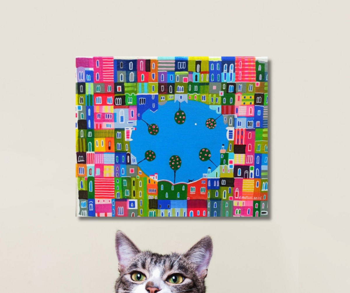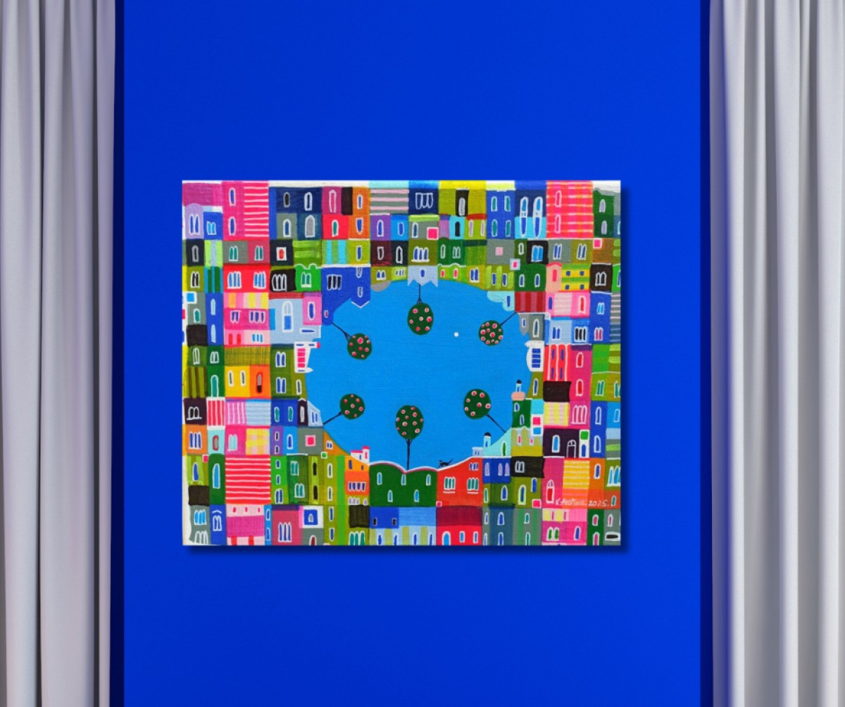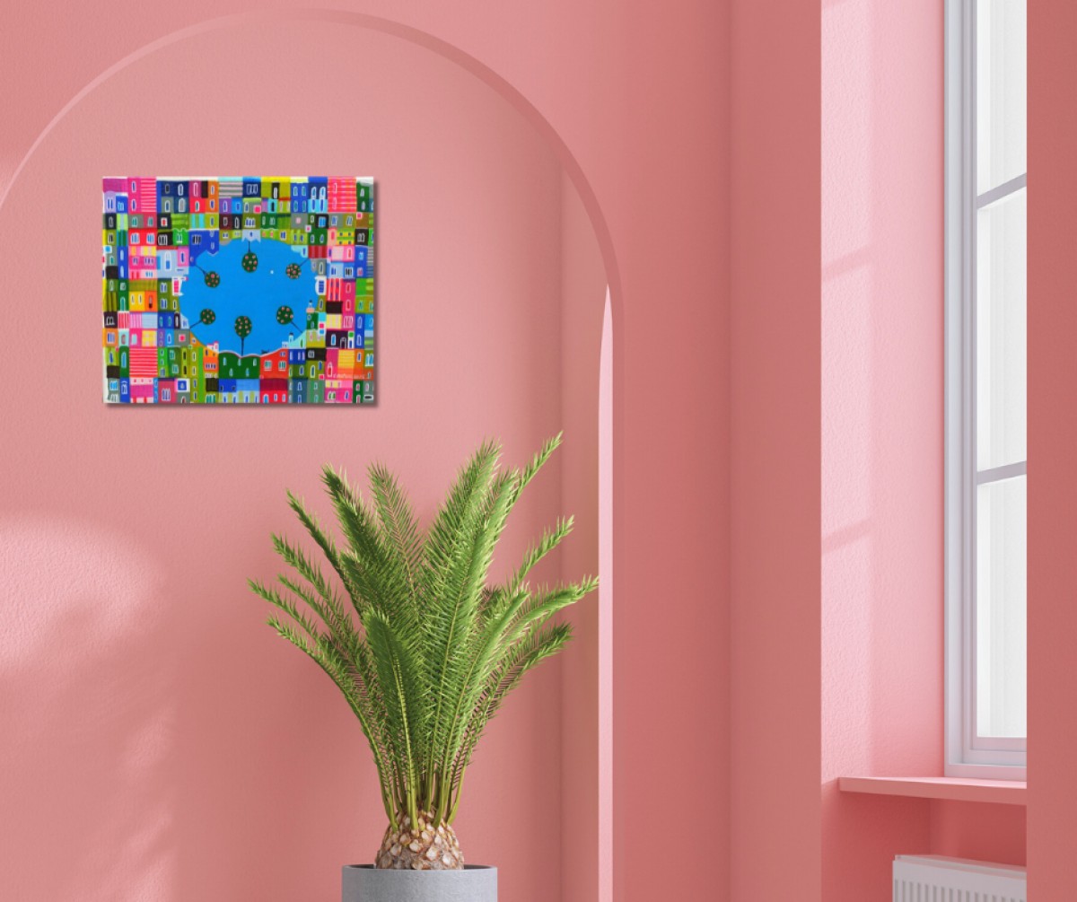 The painting is 2 cm deep and can be hung without an additional frame, also all picture sides are painted.
