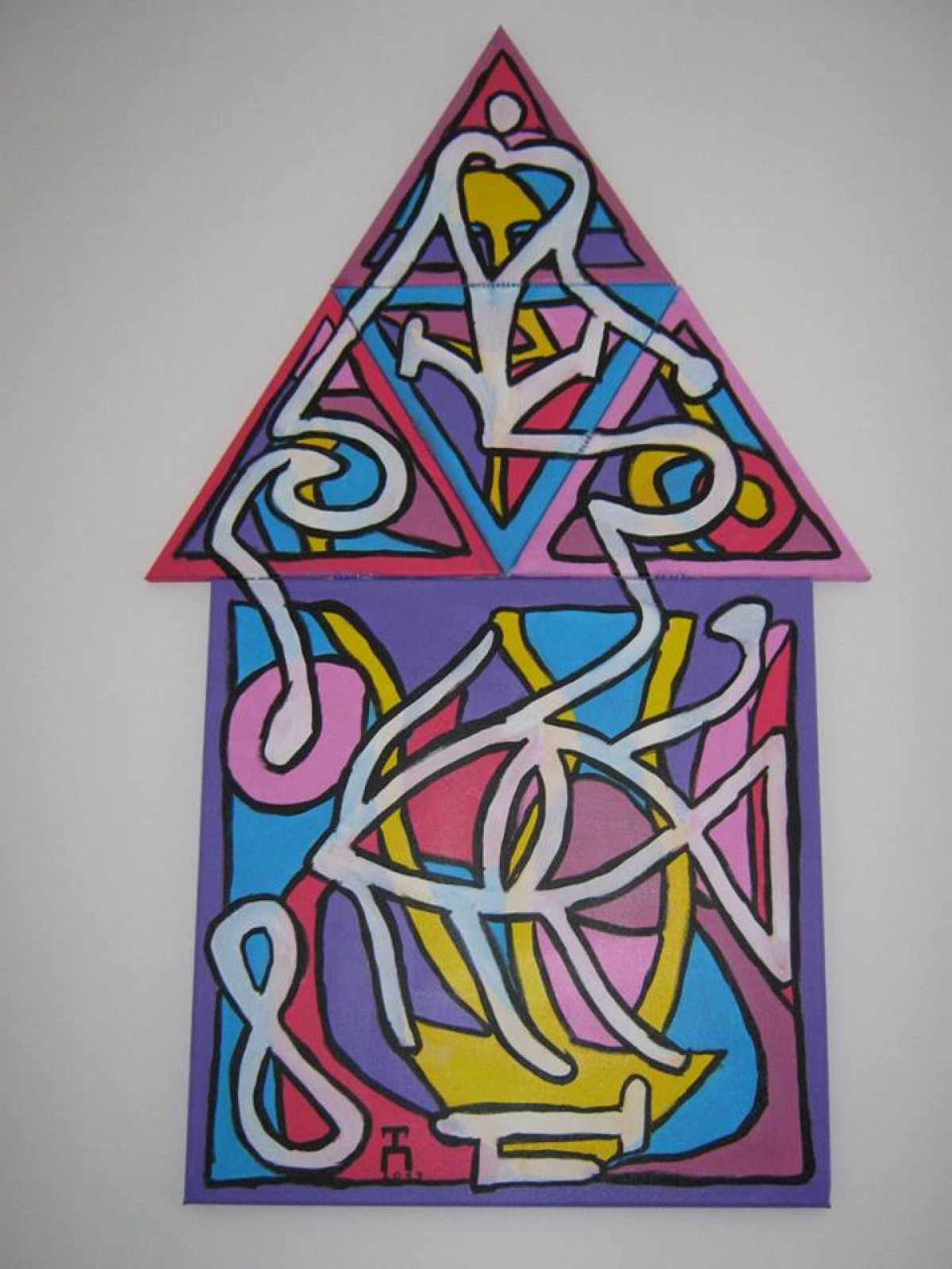 At Home is painting in KreaNishava fine art style by Paka Traykova. KreaNishava is one of the writings of the sacred country of Mrania. The translation means "Secret Signs of Truth". Through it I express in depth the history, the mythology, the spirituality and the meaning of the Mranian culture.