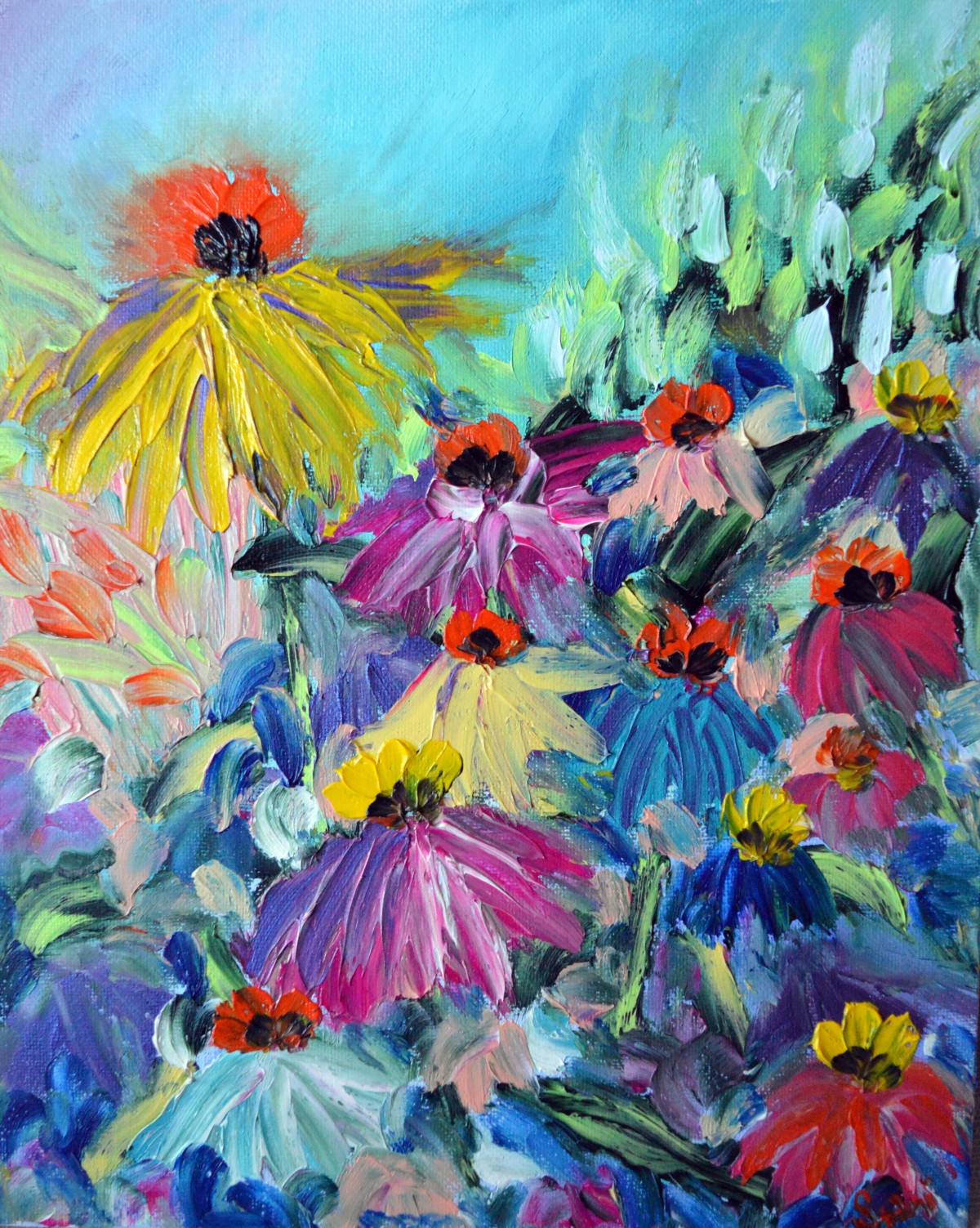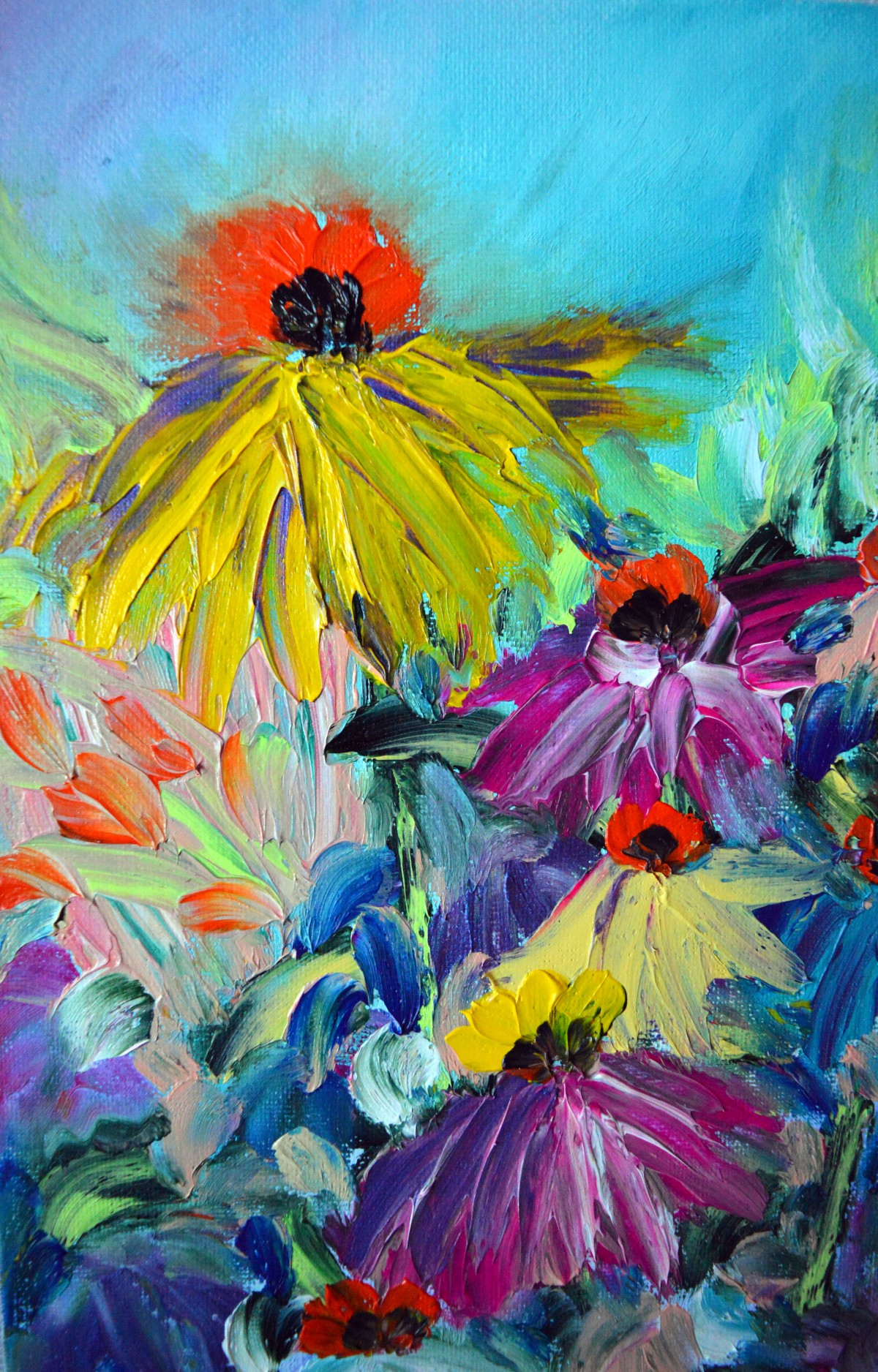 This unique picture is painted only with fingers - without the use of brushes, palette knife or other appliances.