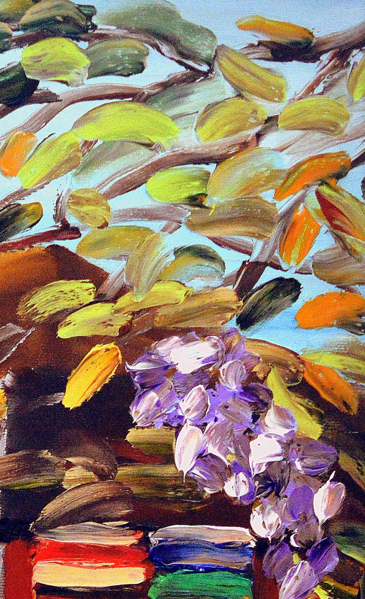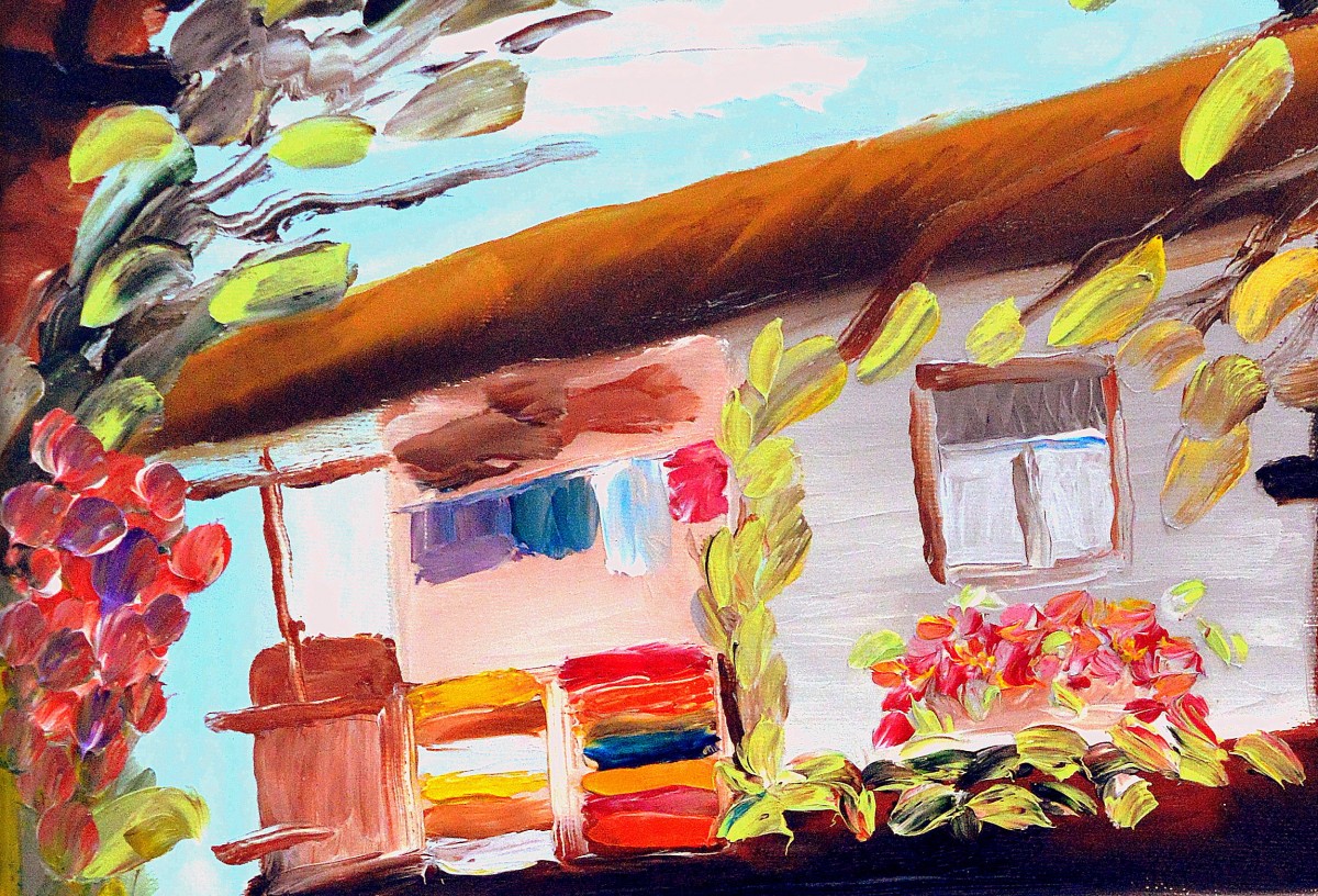 This unique picture is painted only with fingers - without the use of brushes, palette knife or other appliances.