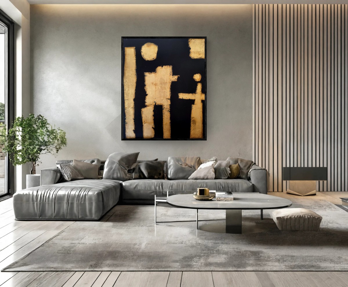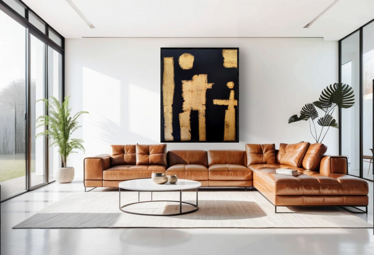 Grande peinture à la feuille d'or et acrylique sur toile, format 80/100 cm .