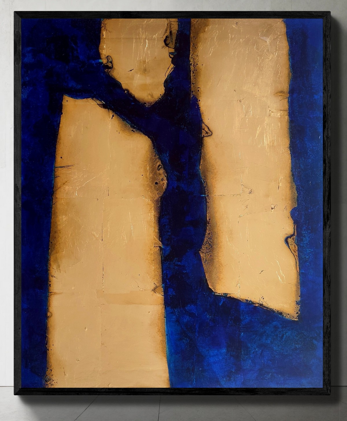 Feuille d'or et peinture acrylique sur toile de format 61/50 cm, avec des teintes turquoise ( peinture création personnelle ) pour un resultat moderne et classique en même temps .