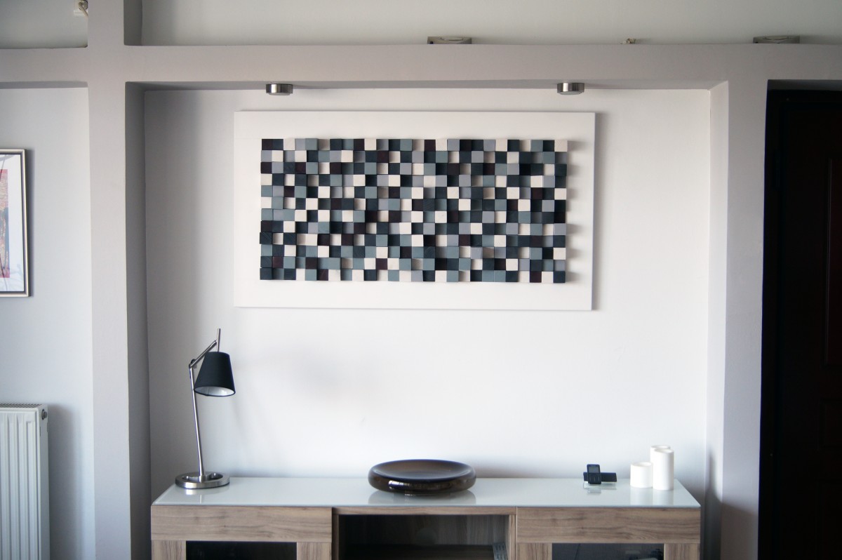 This artwork is a wood sound diffuser. Created with different type of woods, it is totally handmade. It is considered eco-friendly and can be used as a sound diffuser art panel. Created by WoodBlocker in Greece, we offer free shipping all around the globe.
