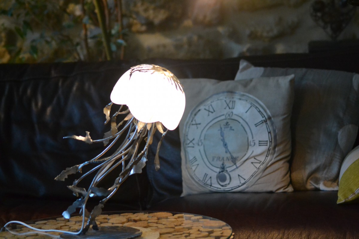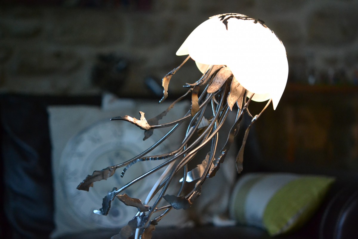 la meduse , un luminaire parti d'un globe d'applique je le voyer en meduse les fillaments fait en metal ....