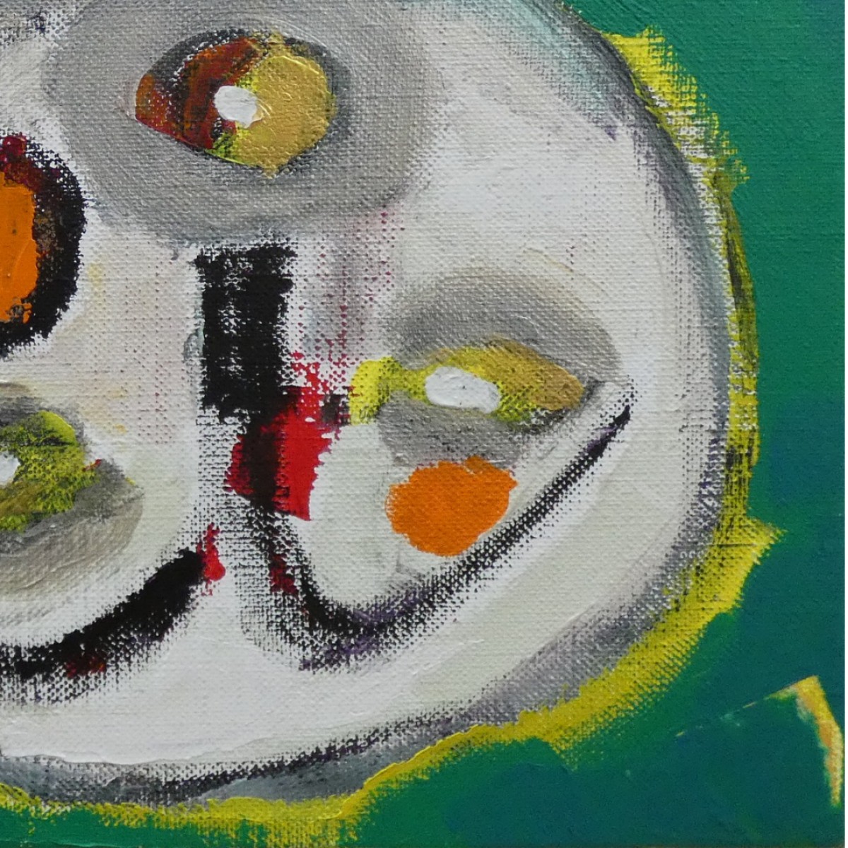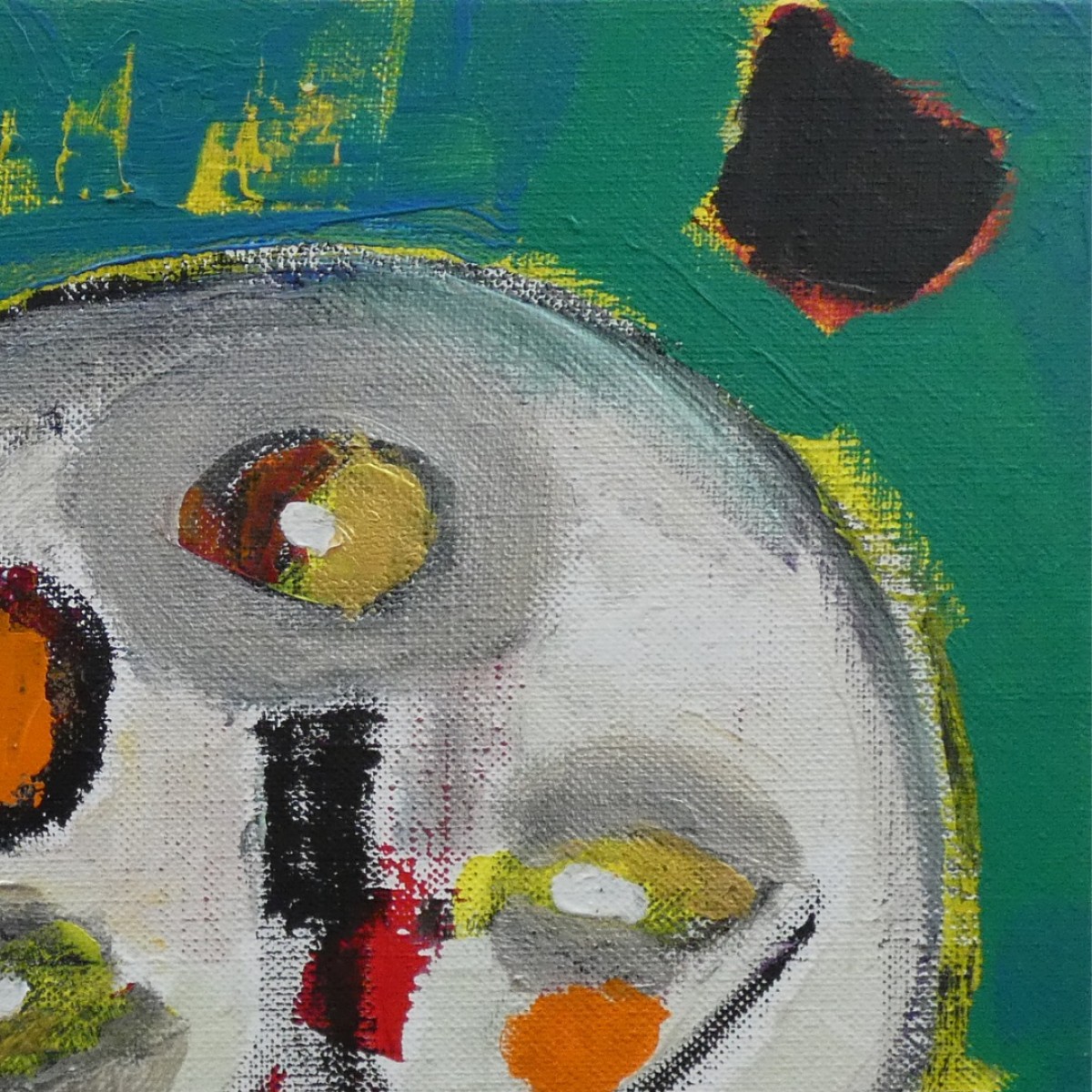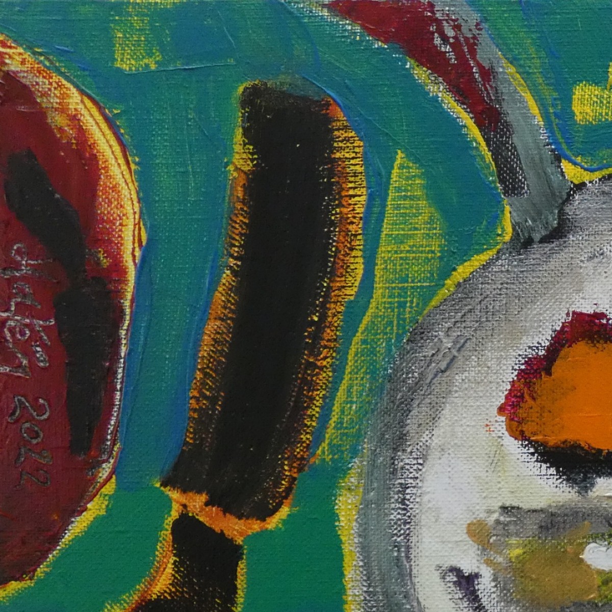 "Photophore tête à l'envers" ©alainhalter 2022. Peinture acrylique sur toile et châssis. Année : Aubervilliers, janvier 2022. Format 5P : 35 (largeur) x 24 (hauteur) cm. Pièce unique. (Les couleurs de la photo sont légèrement amoindries par rapport à l'original en raison de l'utilisation de peintures métalliques). Hors encadrement. Encadrement sur demande avec devis.