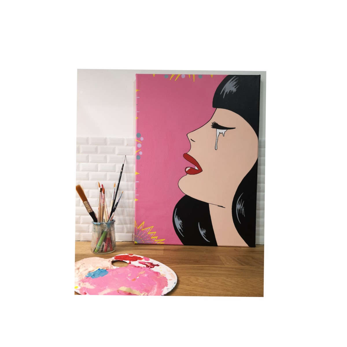 Etudiante de 23 ans et salariée dans une grande surface alimentaire, j'ai commencé la peinture il y a deux mois pour m'évader de cette période anxiogène. Je ne suis pas une professionnelle, je suis autodidacte et me sers de modèles. Ici, mon troisième tableau, le premier en style pop art.
