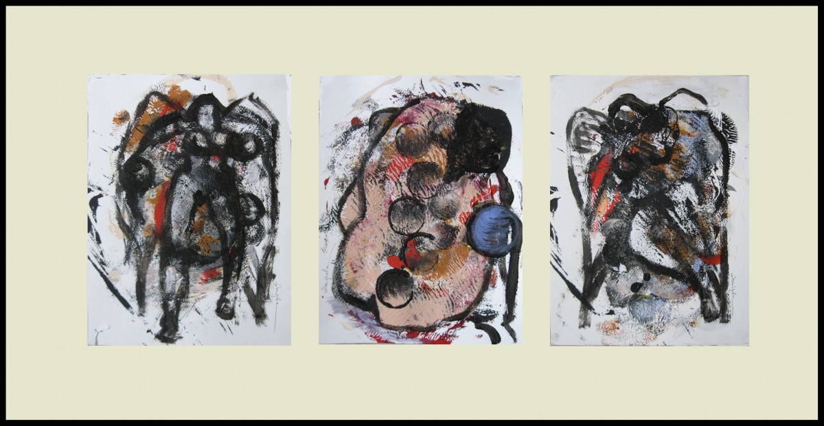 I was sick for a while...I felt my strength was going down...Then I decide to heal myself working on a piece of art ...This is it...On the left side is my guardian angel, in the middle is me, dreaming and on the right is my angel who is healing me. All my angels are shown like a woman and finally why not...or that are my best parts guarding me and healing me while I'm dreaming...?