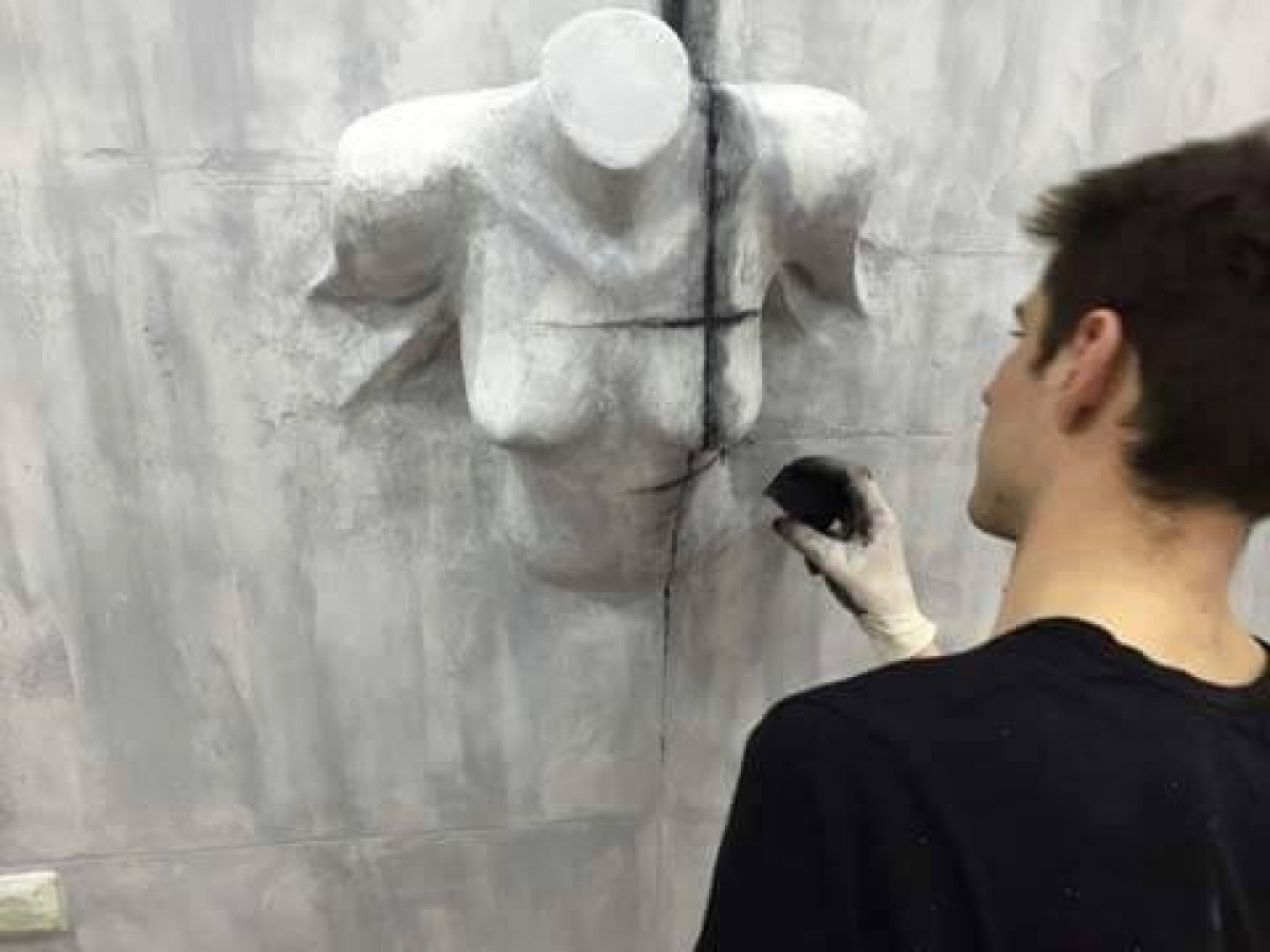 a combination of sculpture and painting