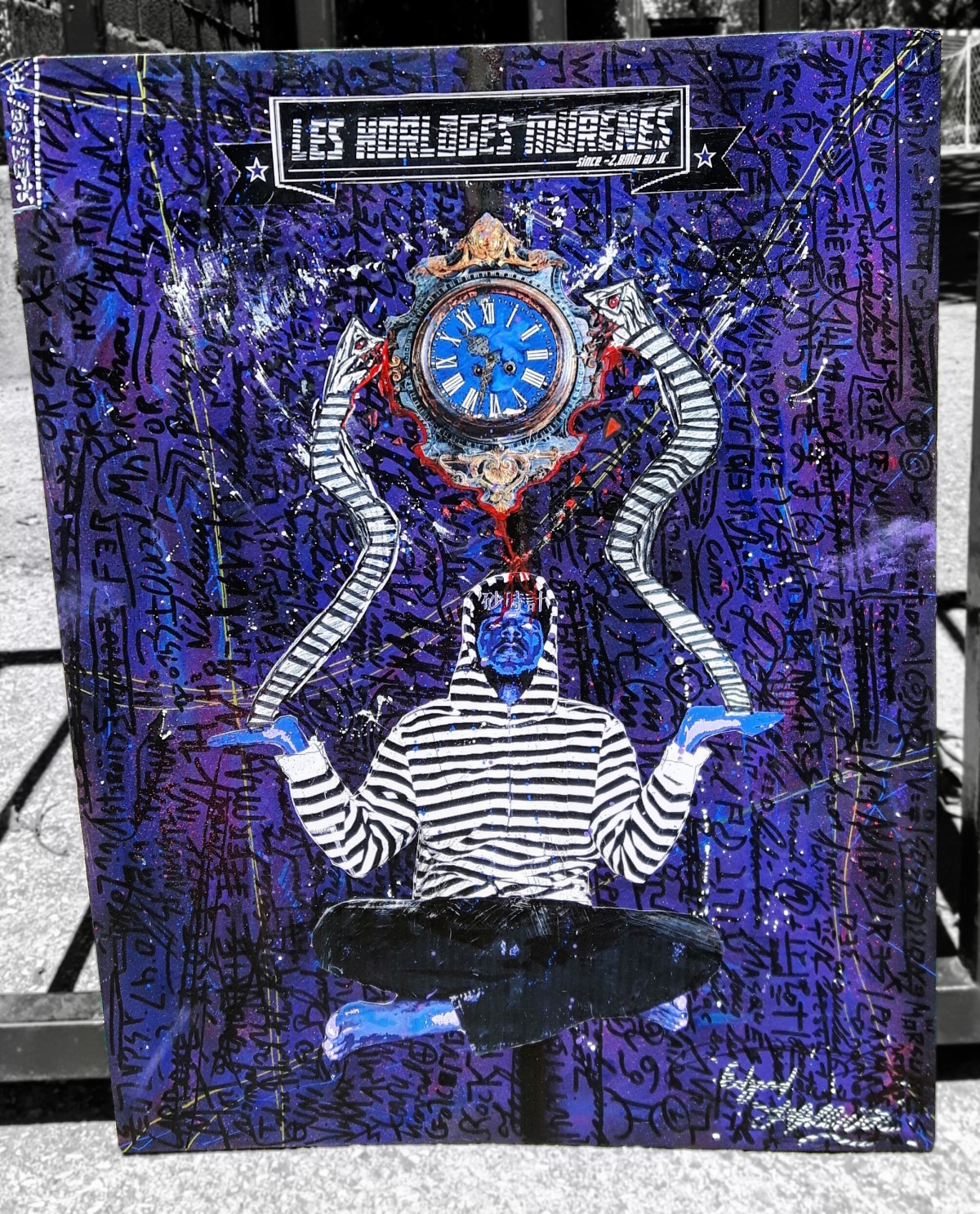 "Les Horloges Murènes " mixed media on extruded polystyrene.