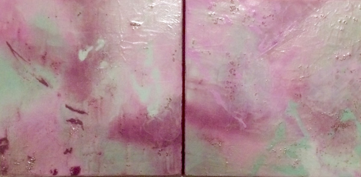 Diptyque de deux fois 10poX10po. Acrylique et billes de verre sur toile