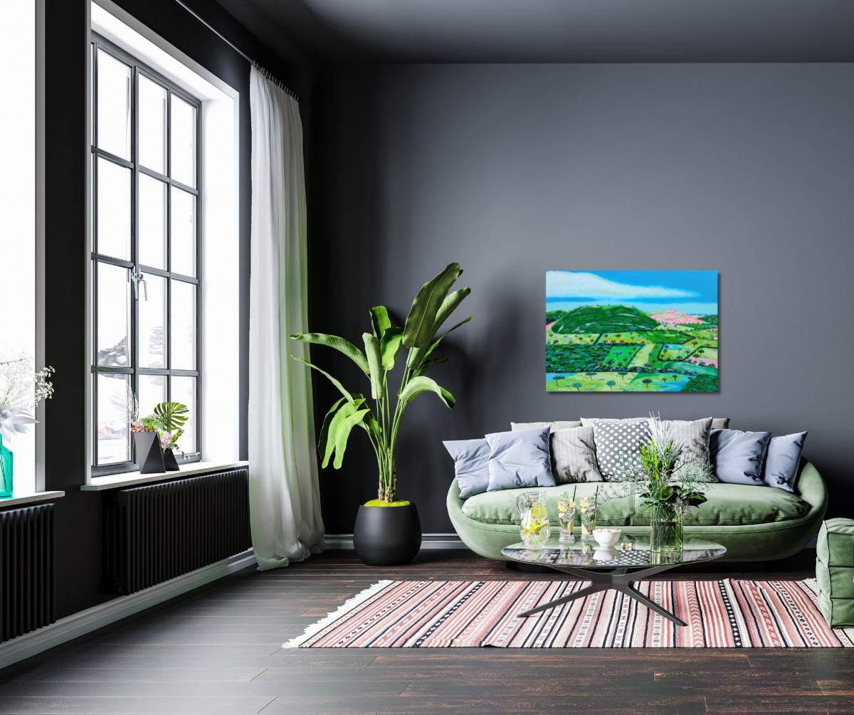 The painting is 2 cm deep and can be hung without an additional frame, also all picture sides are painted.
