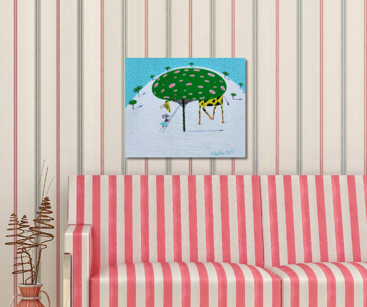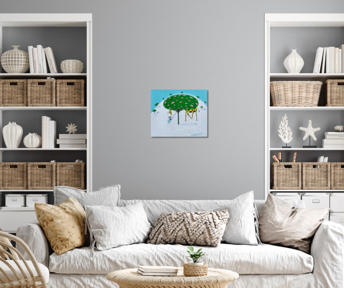 The painting is 2 cm deep and can be hung without an additional frame, also all picture sides are painted.