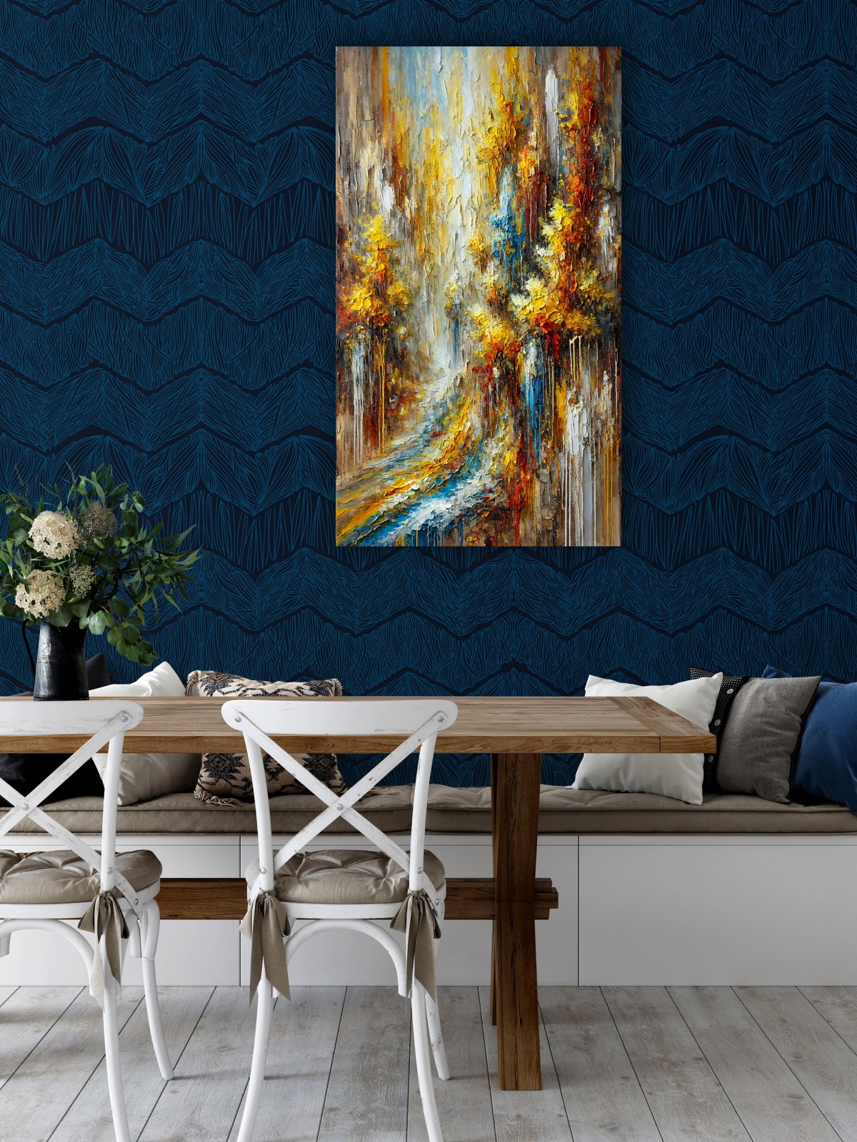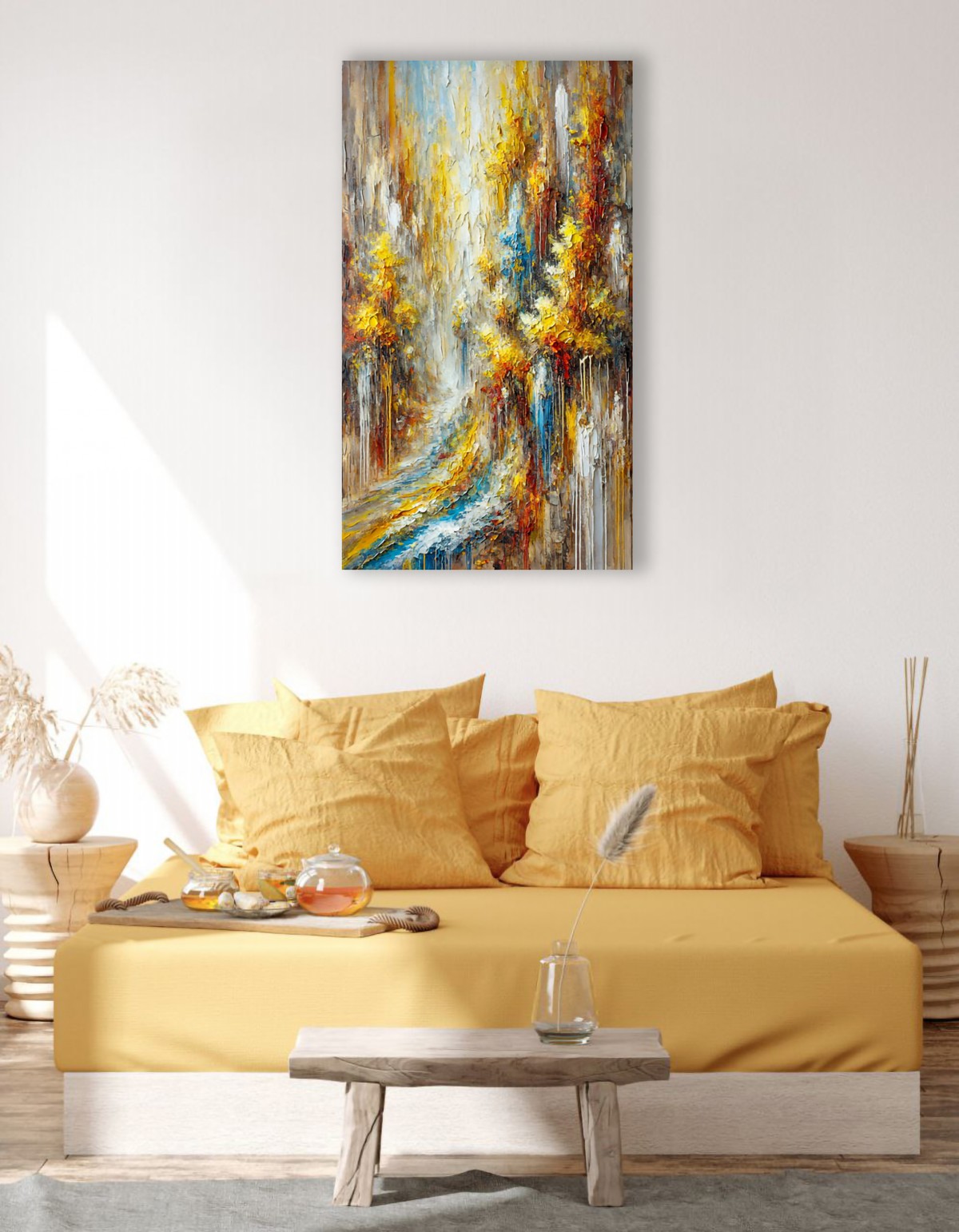 On the canvas unfolds a quiet conversation between nature and time.