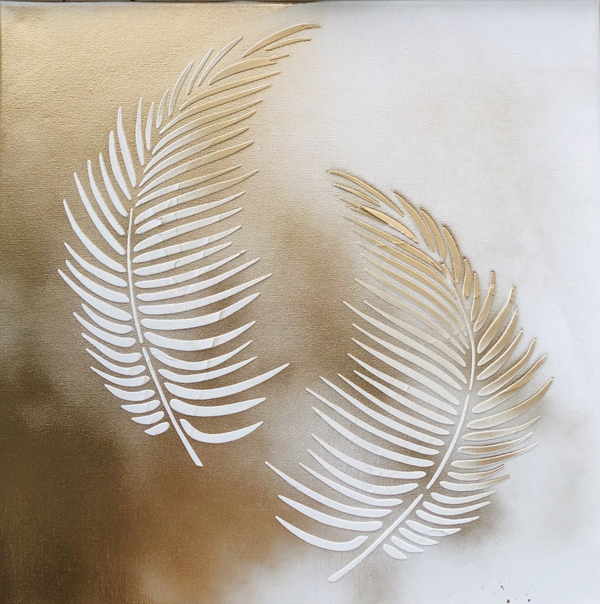 Peinture acrylique blanc et or avec pâte de structure