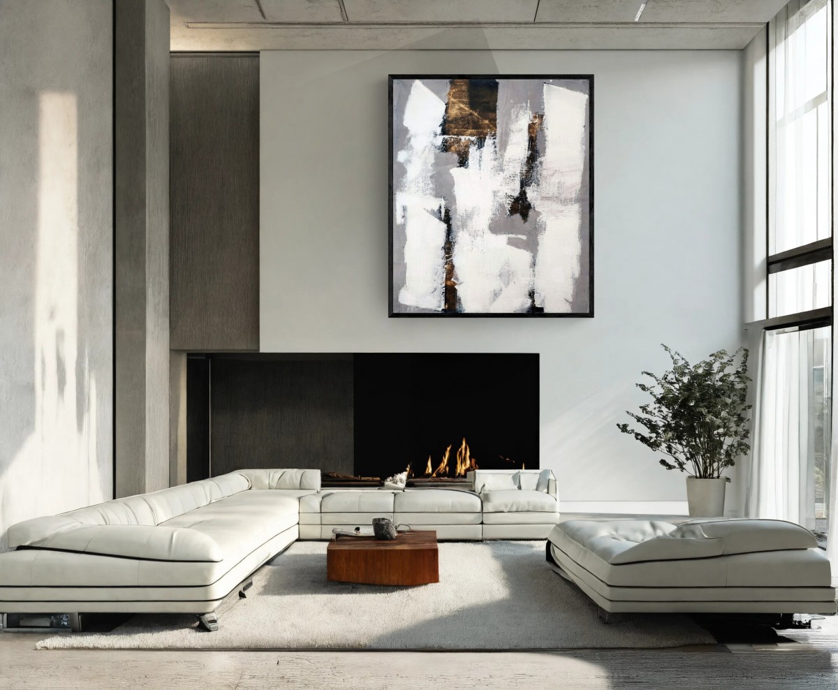 Peinture acrylique et feuille d'or sur toile, format 61/50 cm, une abstraction en or, noir et blanc .