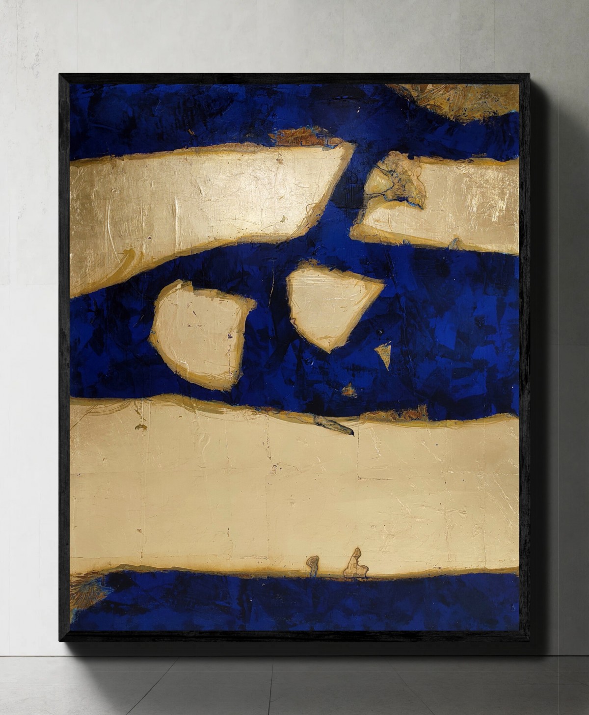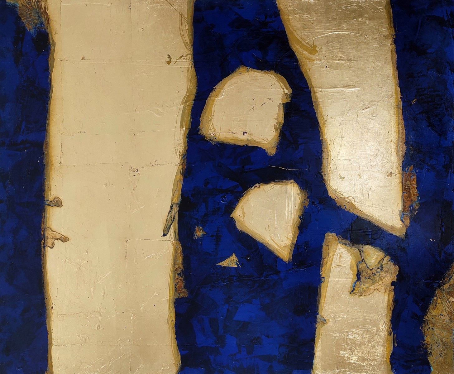 Le mariage du soleil et de la nuit, du classicisme à la Française et de l’abstraction lyrique très moderne . Feuille d'or et peinture sur toile 80/100 cm .
