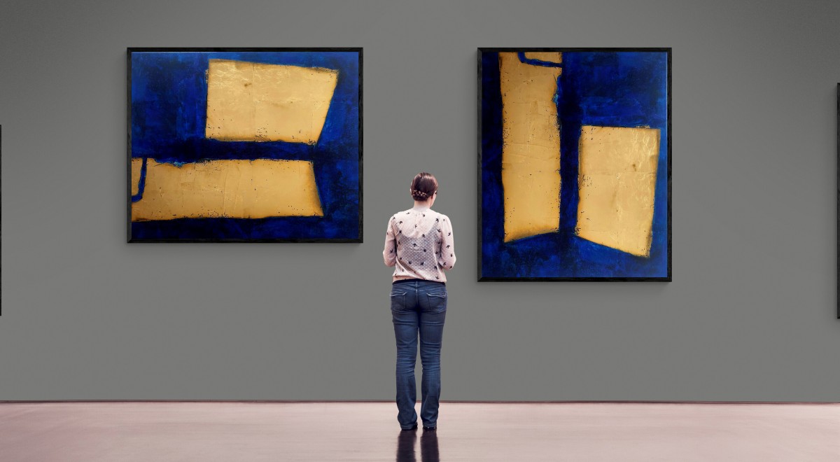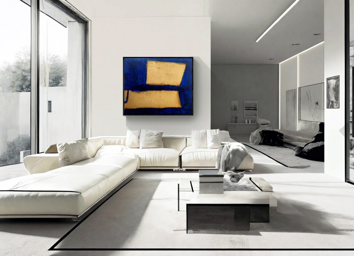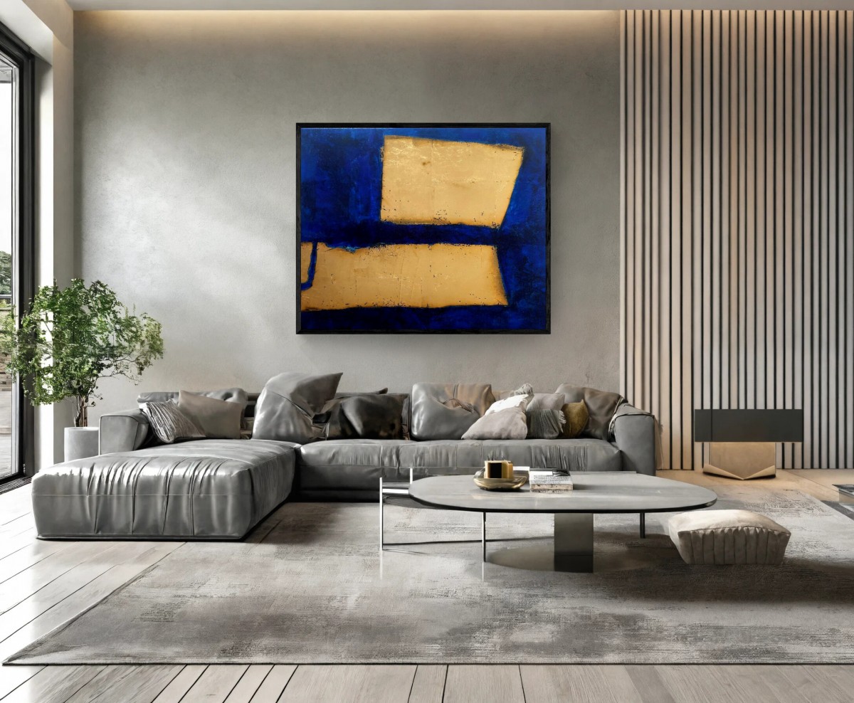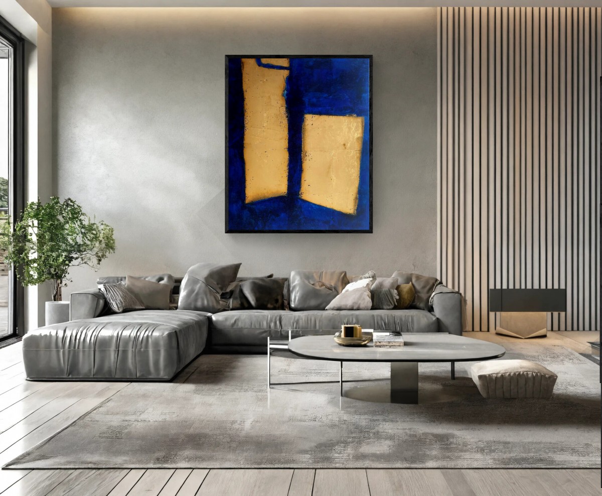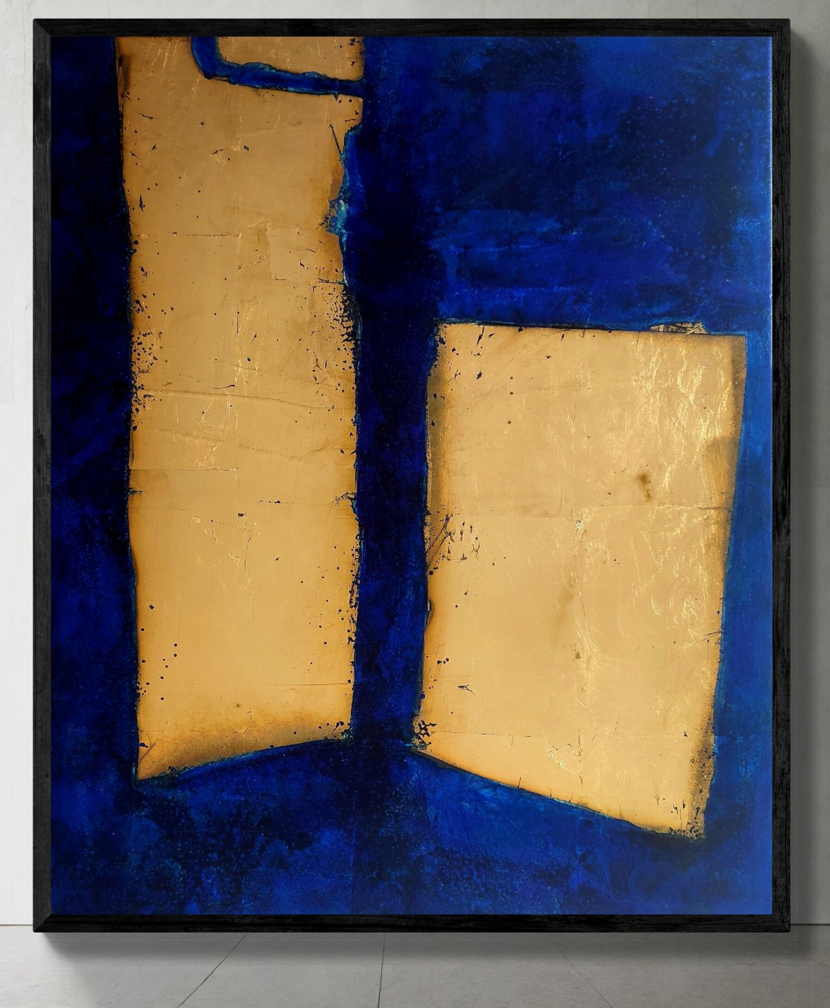 Feuille d'or et peinture acrylique sur toile de format 61/50 cm, avec des teintes turquoise ( peinture création personnelle ) pour un resultat moderne et classique en même temps .