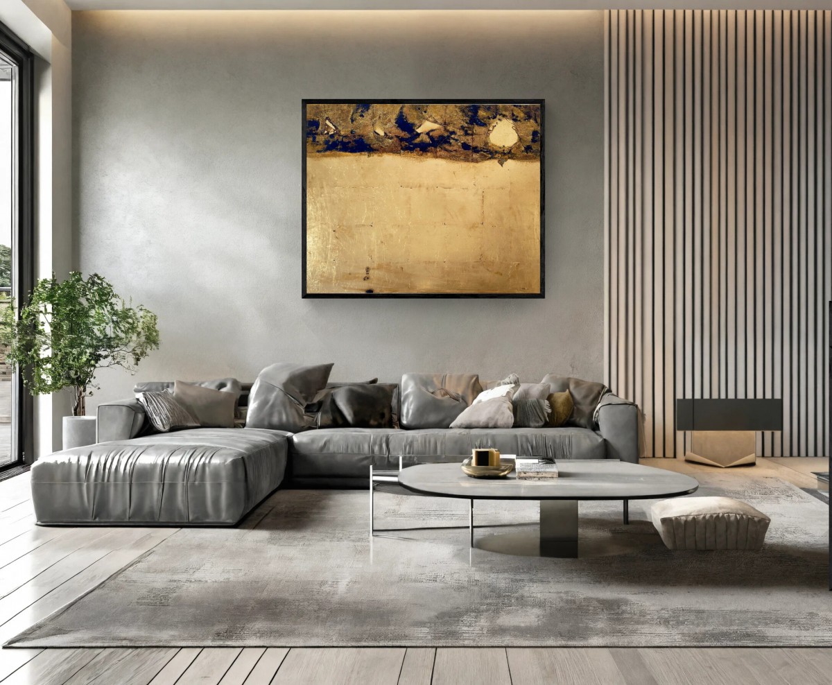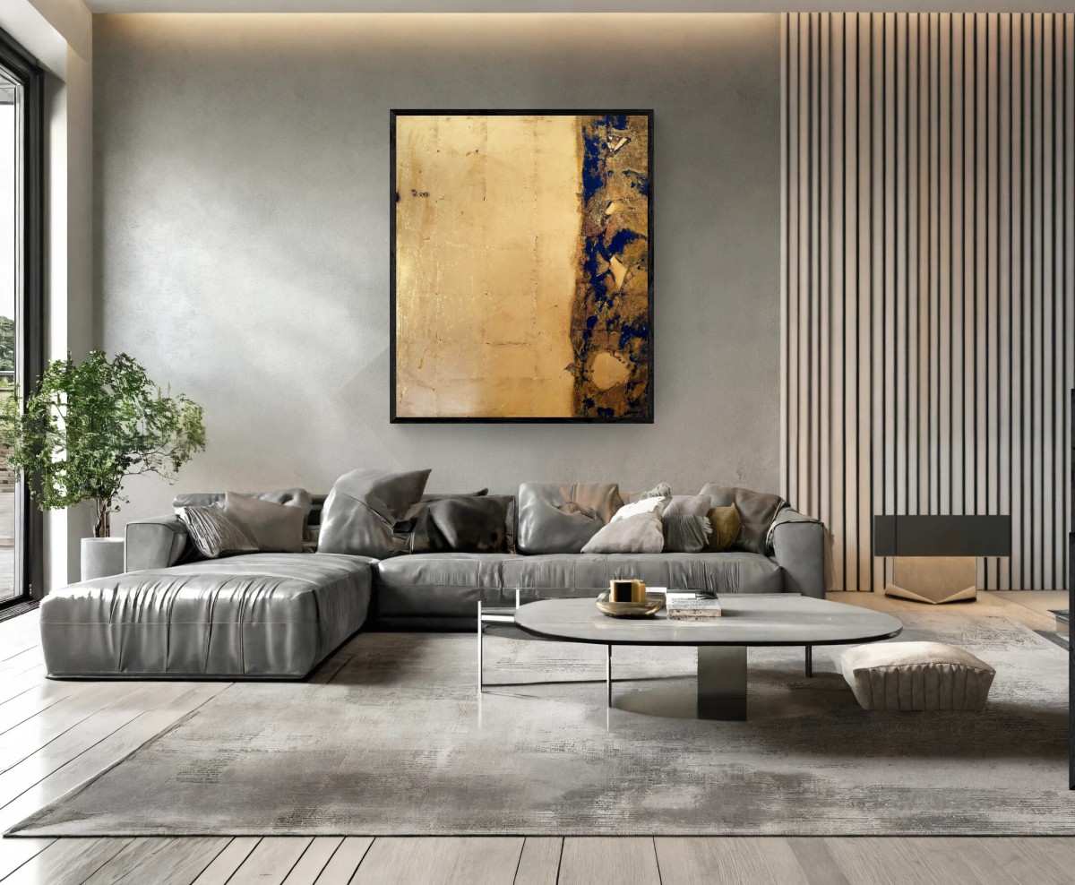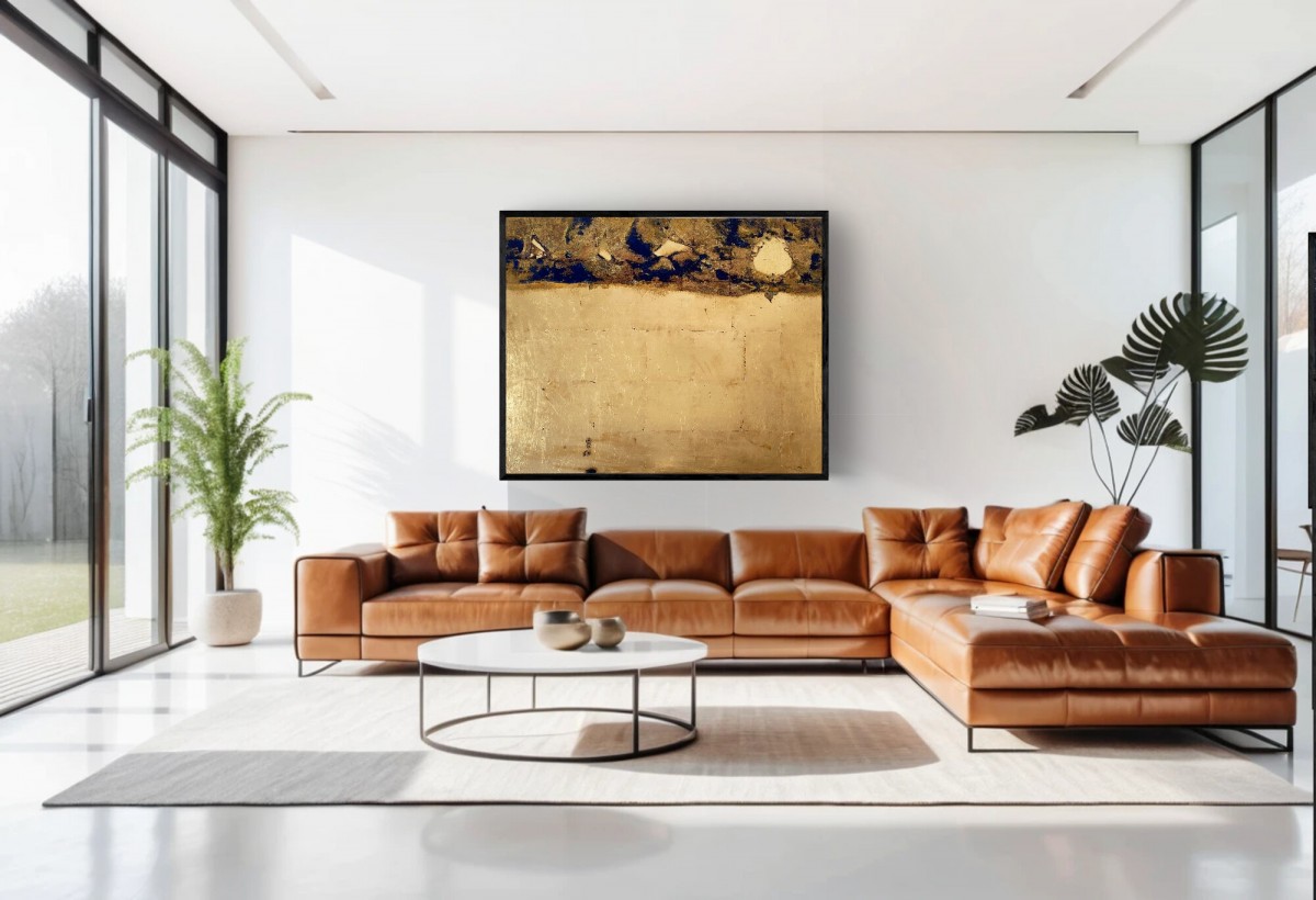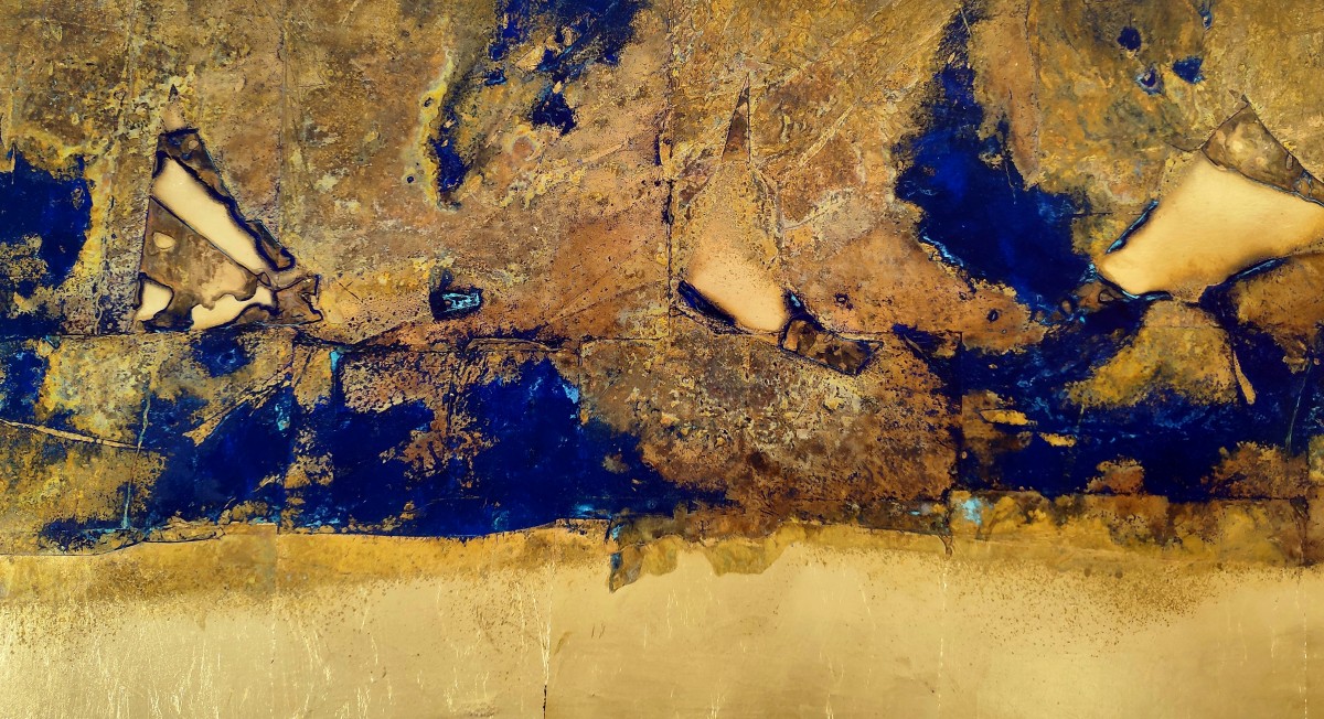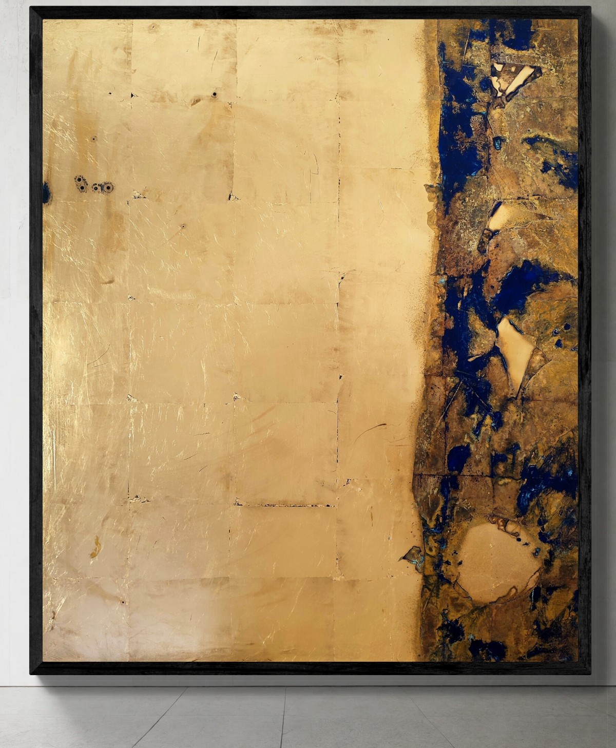 Le mariage du soleil (or) et de la nuit ( bleu outremer foncé) , du classicisme à la Française et de l’abstraction lyrique très moderne .