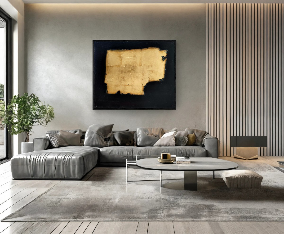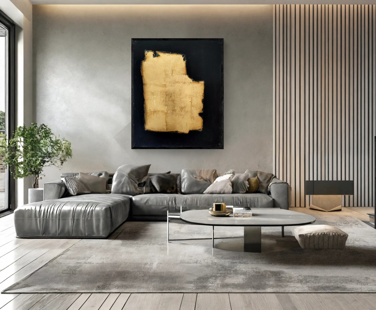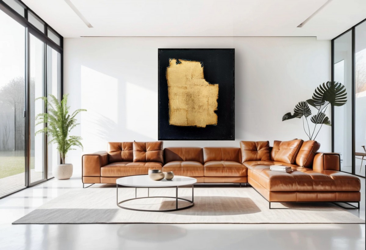 Peinture acrylique et feuille d'or sur toile, format 50/61 cm.