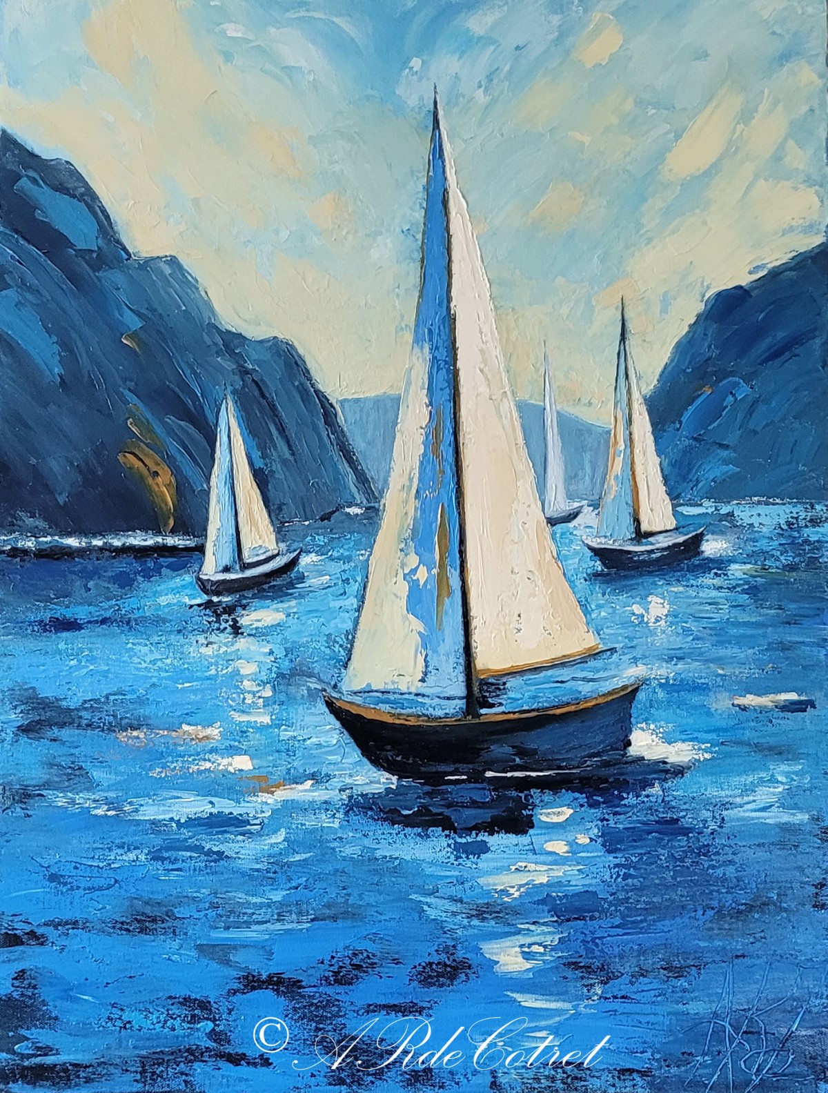 Toile galerie.Inspiration de notre voyage à Tadoussac cet été, dans les tons de bleue, crème et sienne