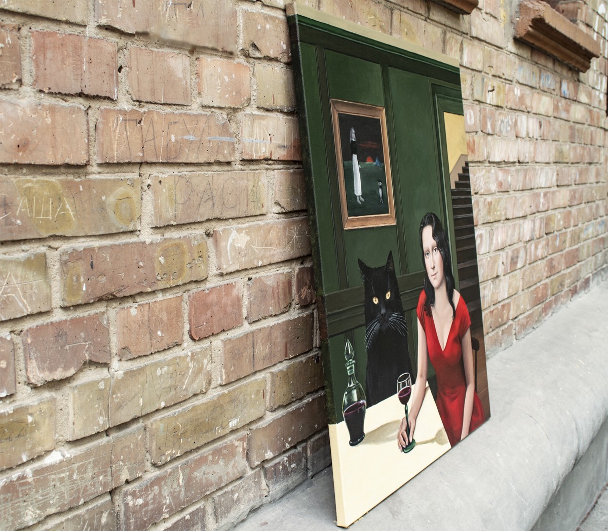 Dutch acrylic paints Amsterdam tm and Italian fine-grained canvas by Unico were used. The finish is satin varnish, and the edges are painted in the background color. This painting is created on a pre-stretched canvas on a wooden frame. It is carefully packed in a cardboard box with layers of bubble wrap. The artwork is signed and accompanied by a certificate of authenticity.