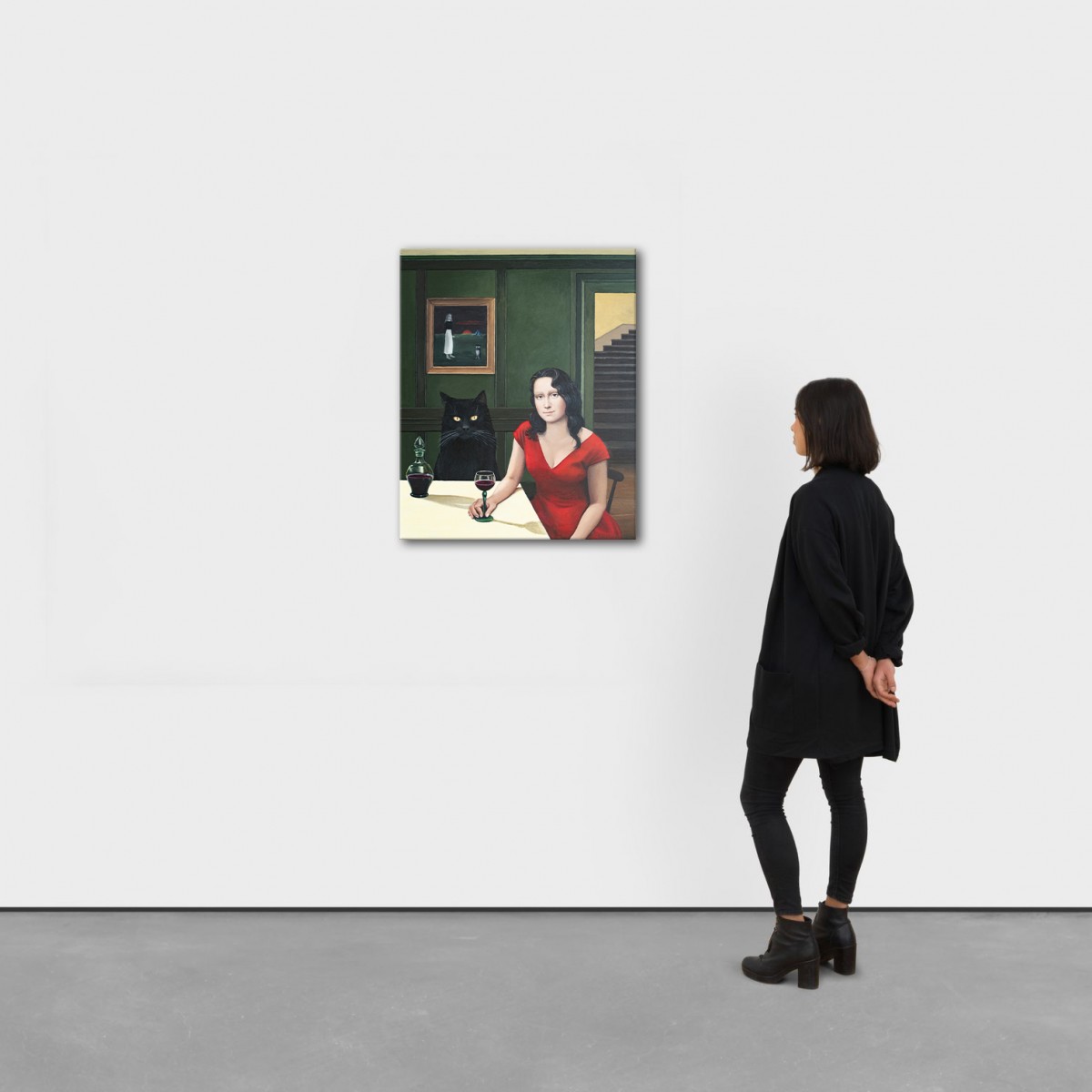 A woman and her cat — the image of comfort. Yet beneath the surface lies the price of that comfort. She cannot leave, cannot collapse, cannot be reckless. The cat demands structure, food, affection, and presence. She dreams of foreign places, of letting go. But she is held in place by soft fur and round golden eyes — a sweet, subtle obligation. This painting captures the bittersweet irony of caretaking love: the one thing you cherish is the reason you stay still.