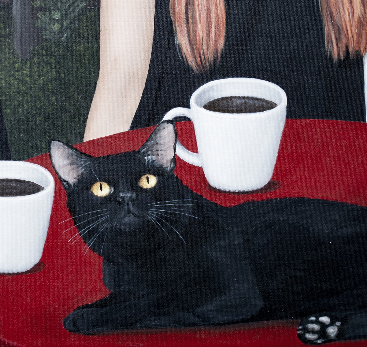 Each figure carries its own psychology: curiosity, serenity, quiet tension. They do not play cards, but the game persists — a mental, emotional, invisible one. The atmosphere invites the viewer to take a seat at the table and feel the subtle rhythm between connection and solitude.