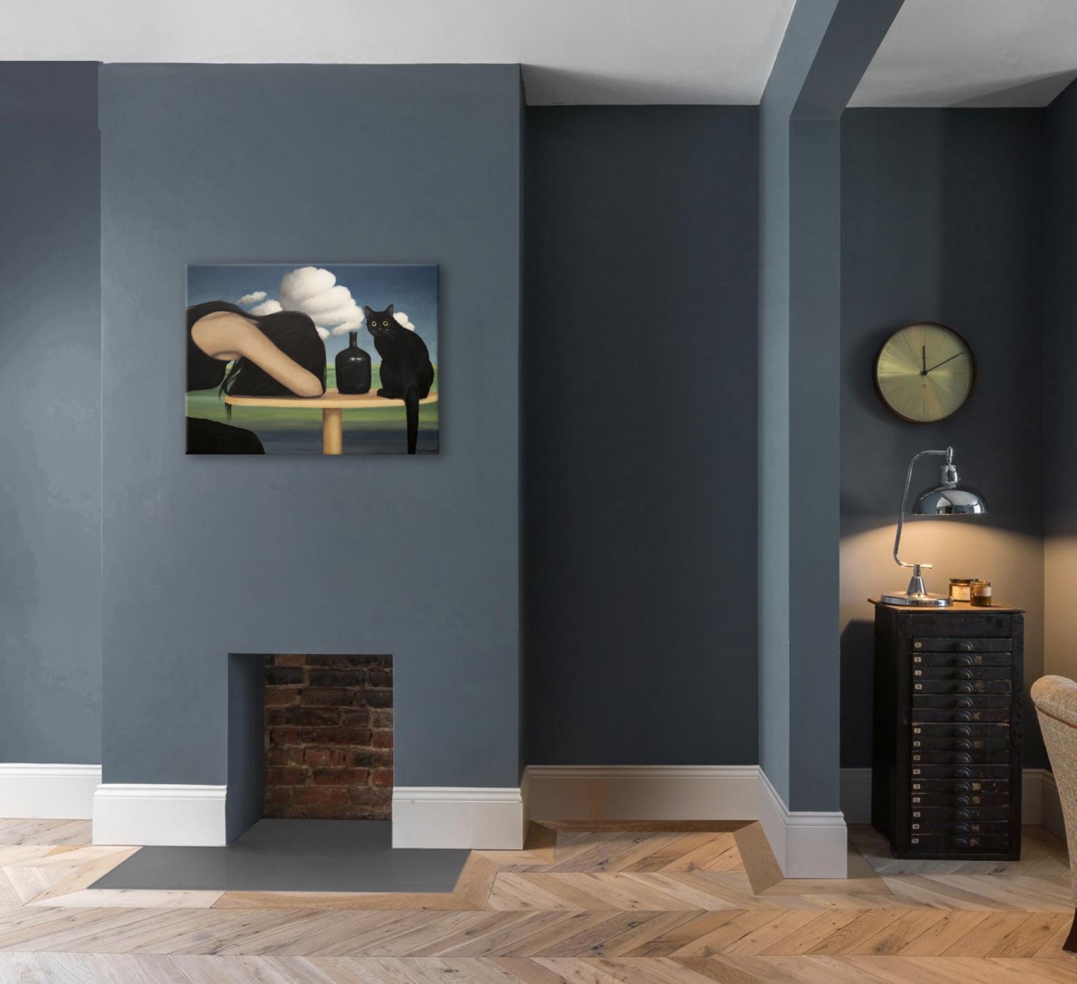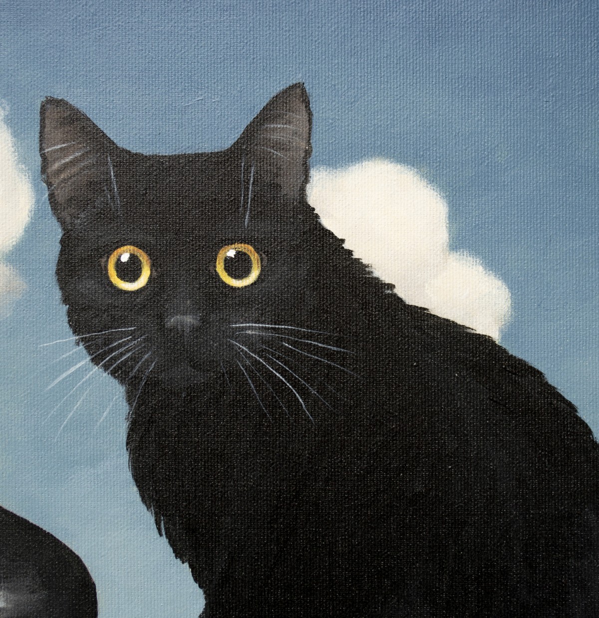 This lifestyle art piece is ideal for creating pleasant moments in your interior. This modern portrait of a black cat and young woman is ready to ship, signed and with a certificate of authenticity.